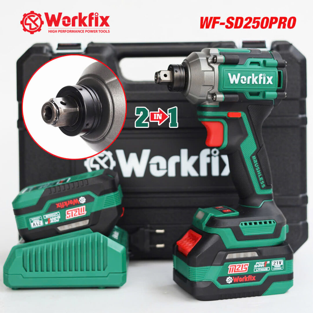 Đầu bulong 2in1 – Cò vô cấp vừa có thể gắn các đầu mở bulong, vừa có thể gắn trực tiếp đầu bắt vít, đầu chuyển khoan rất tiện dụng
