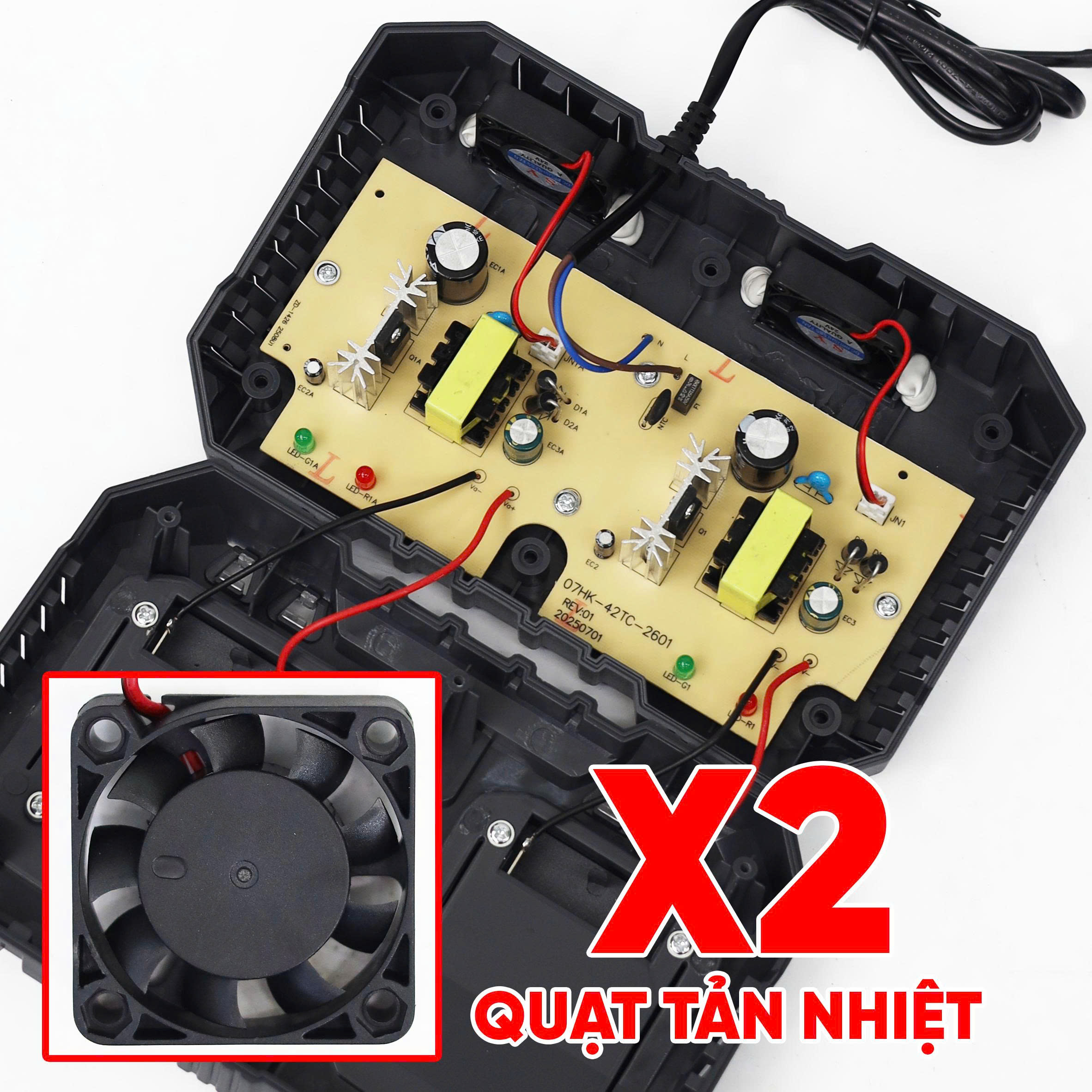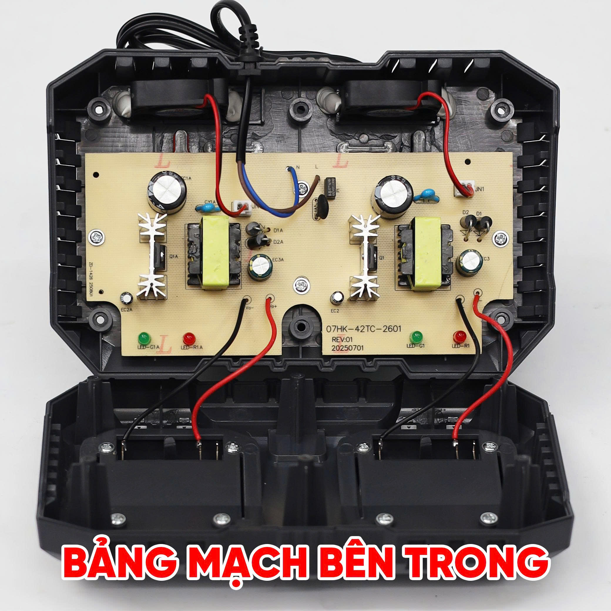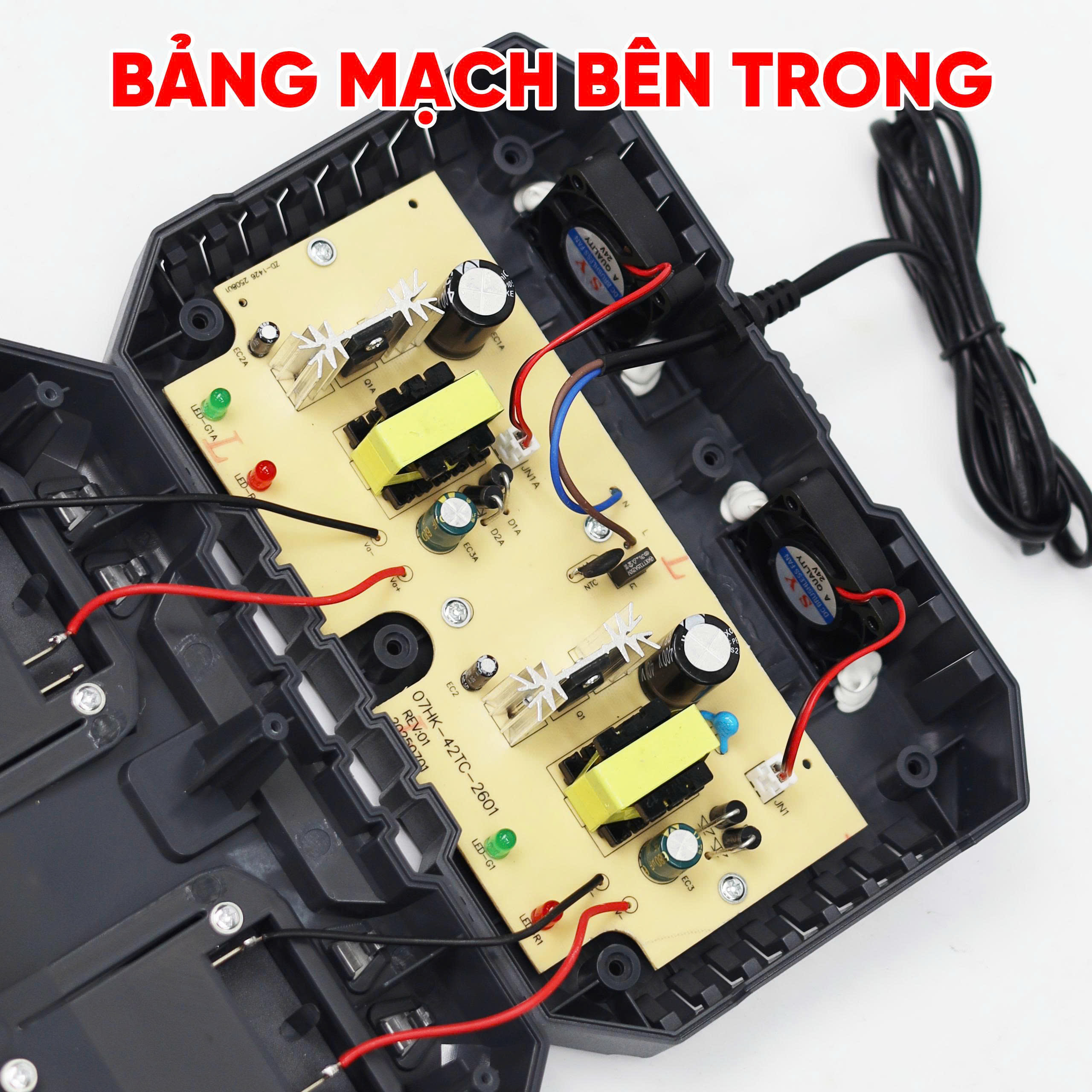Bảng mạch được trang bị quạt tản nhiệt giúp sạc được nhiều thiết bị, không lo nóng, cháy nổ