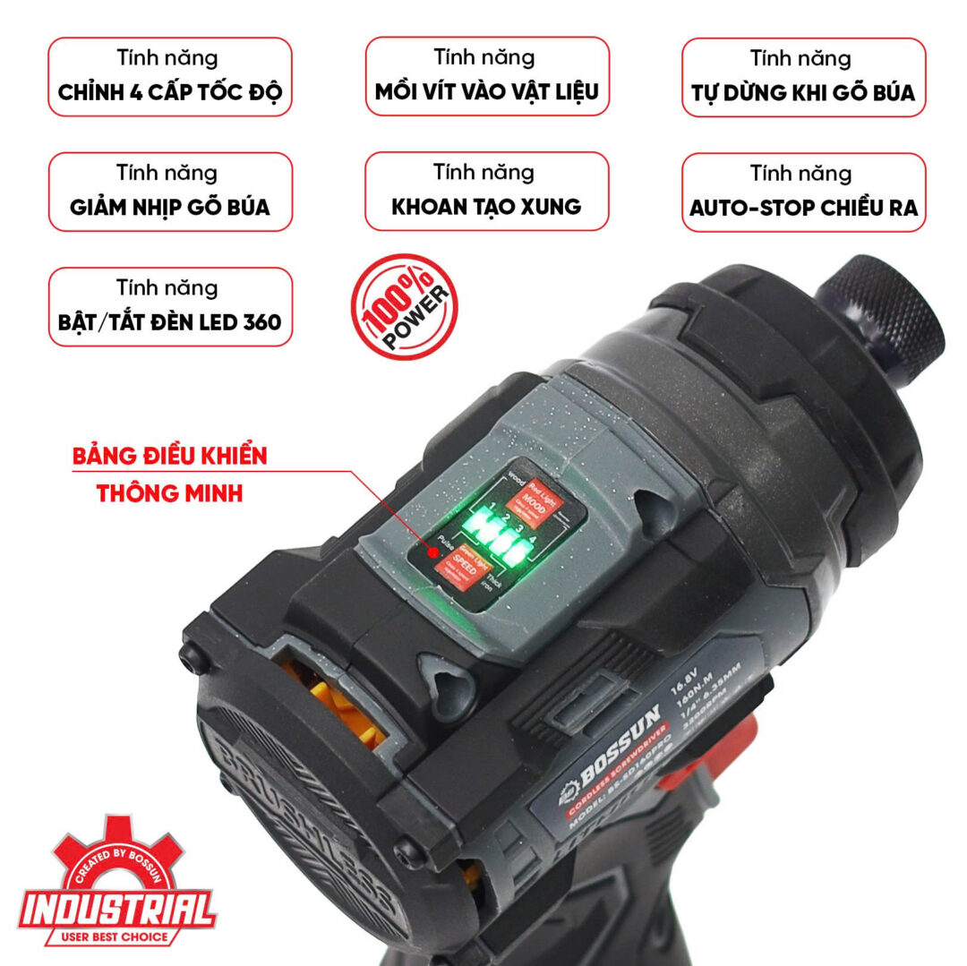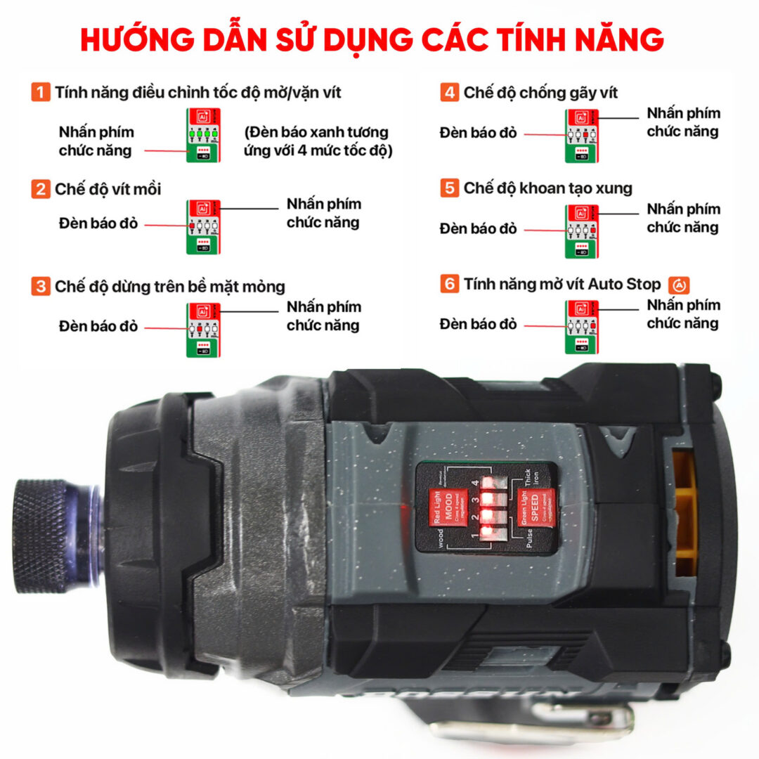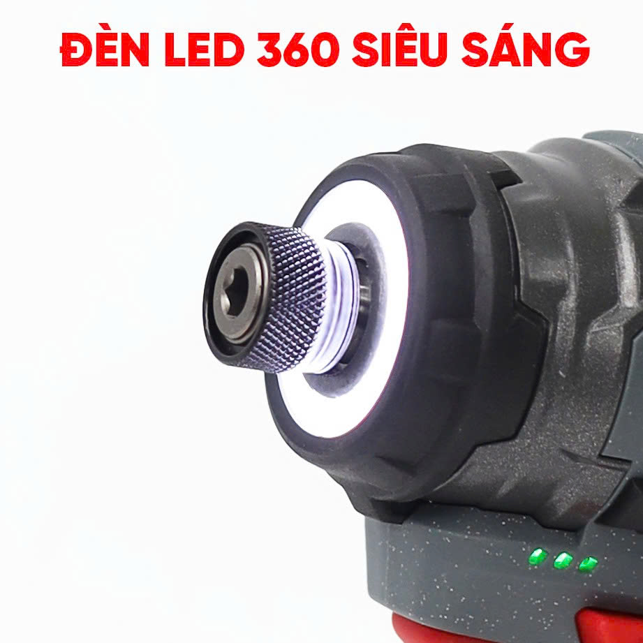 Không lo thiếu sáng với đèn LED 360° bao quanh đầu máy chuyên vít. Chiếu sáng mọi góc khuất, giúp thao tác chính xác tuyệt đối. Tích hợp tính năng bật/tắt linh hoạt