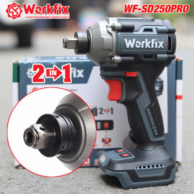 Đầu bulong 2in1 – Cò vô cấp vừa có thể gắn các đầu mở bulong, vừa có thể gắn trực tiếp đầu bắt vít, đầu chuyển khoan rất tiện dụng
