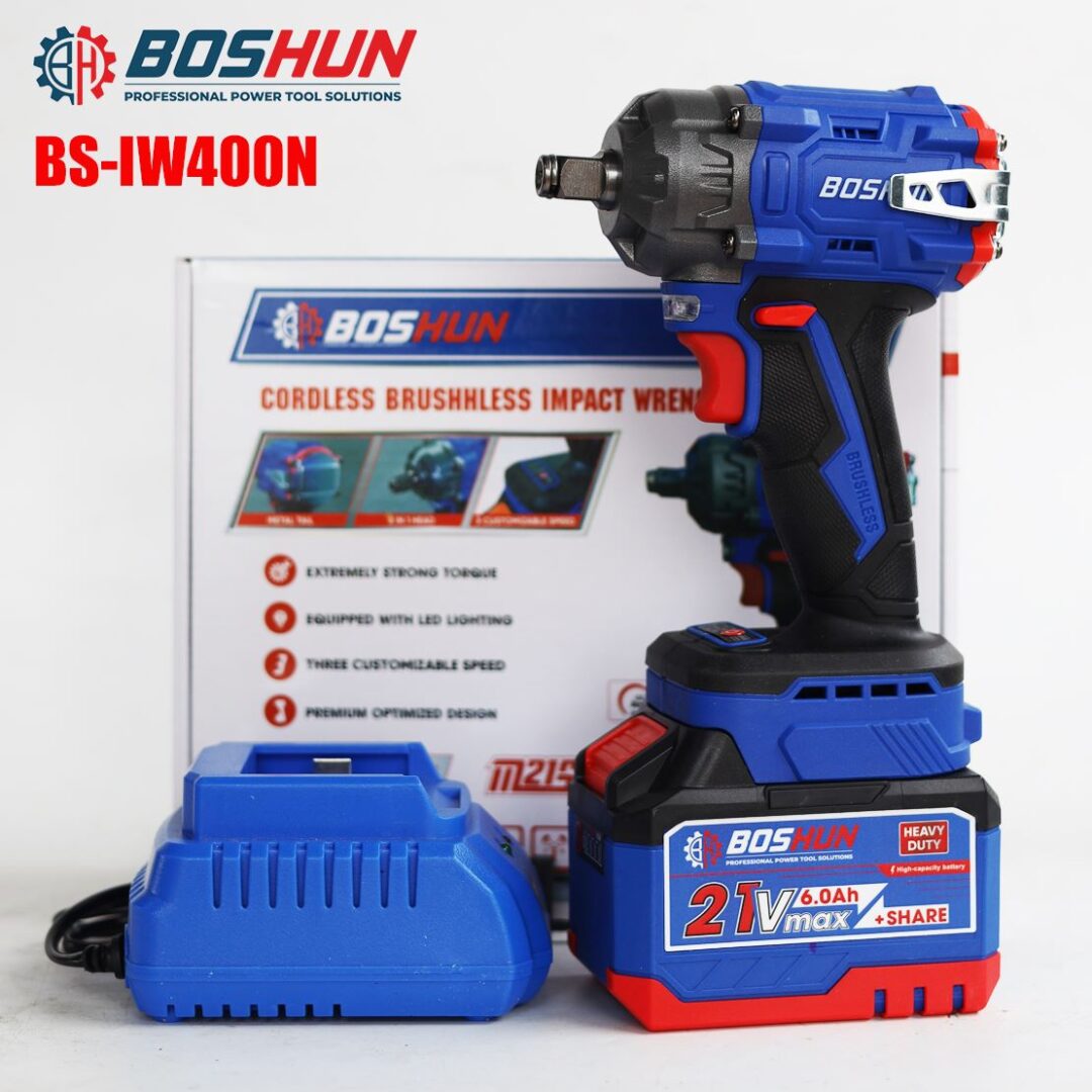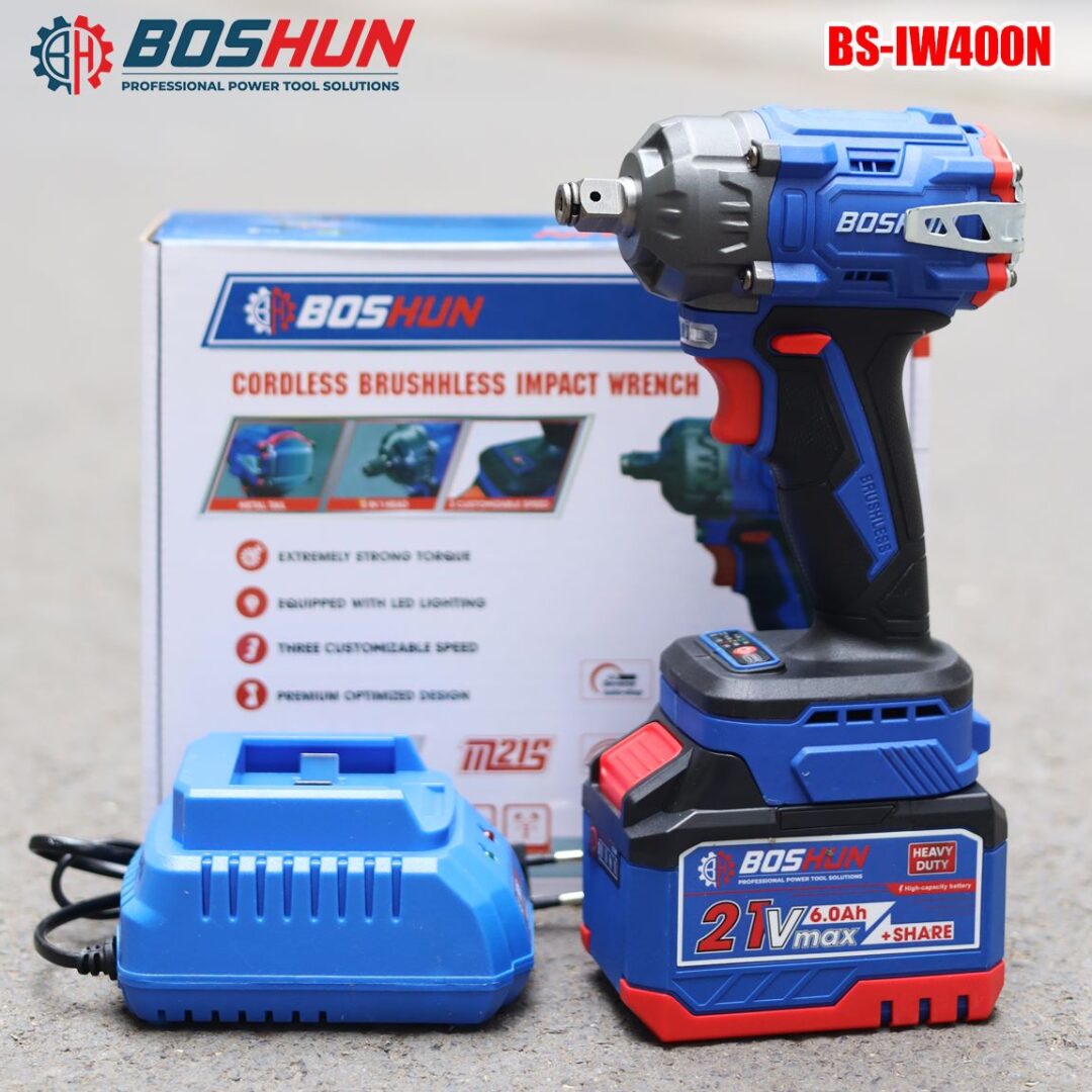Máy Siết Bulong Pin BOSHUN BS-IW400N, Lực siết 400Nm, Không Chổi Than, Đầu Bulong 2in1, Động Cơ Đồng