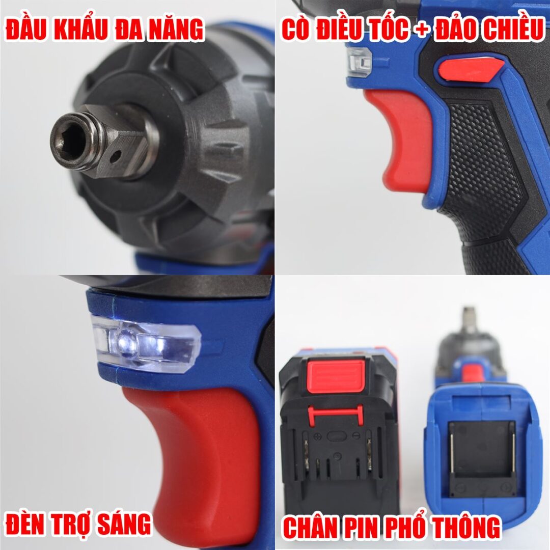Về đèn trợ sáng khi làm việc ban đêm, máy được thiết kế đèn trợ sáng ở quanh đầu siết, giúp bạn làm việc hiệu quả hơn các máy dòng thông thường chỉ có 1 đèn