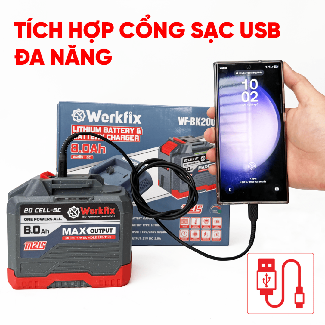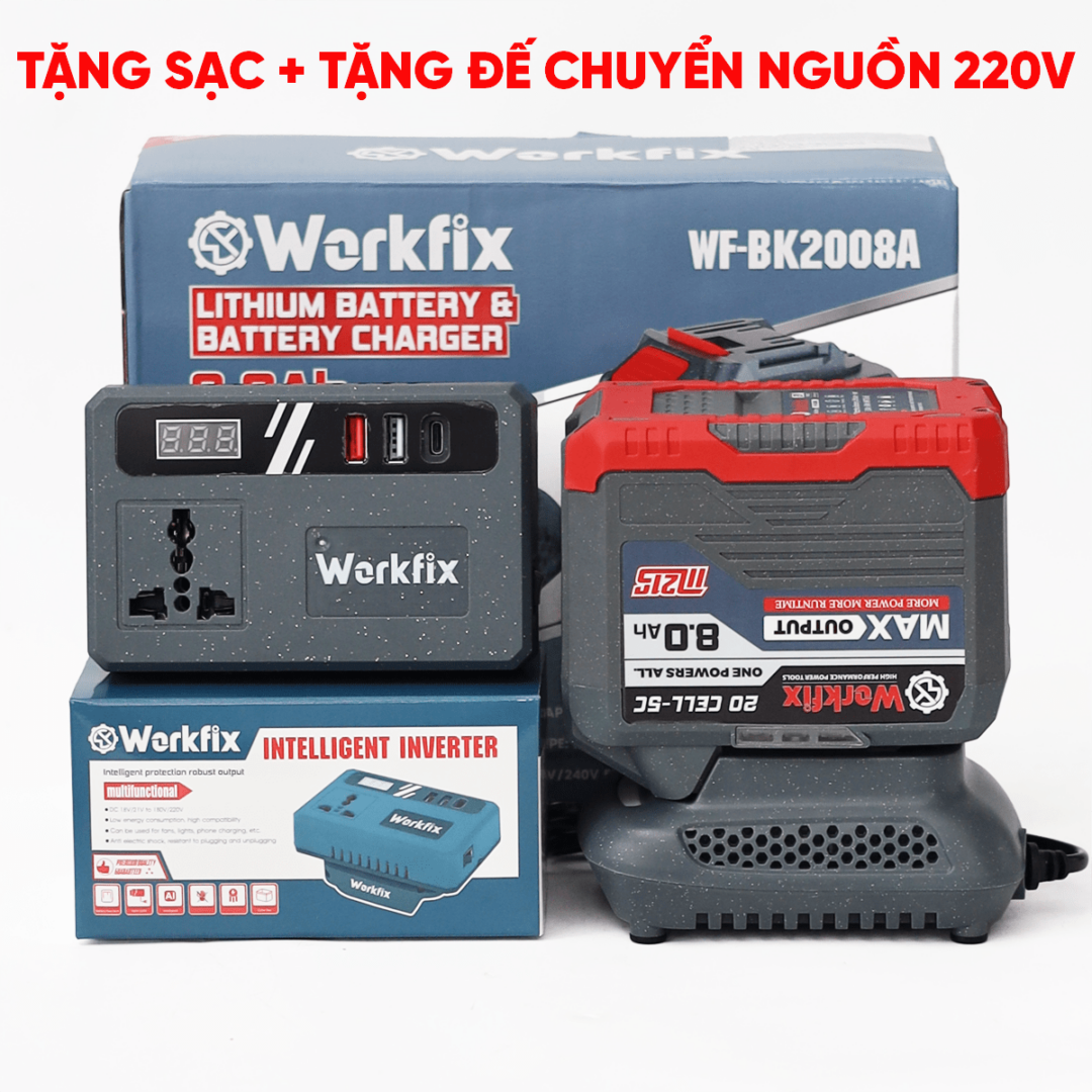 Combo kết hợp của nhà Workfix này phù hợp với mọi nhu cầu trong dân dụng như khi mất điện cần cắm sạc điện thoại, bật đèn, cắm quạt, tivi,.. Và trong cơ khí như khi khoan bê tông, cưa, mài, thổi bụi,…