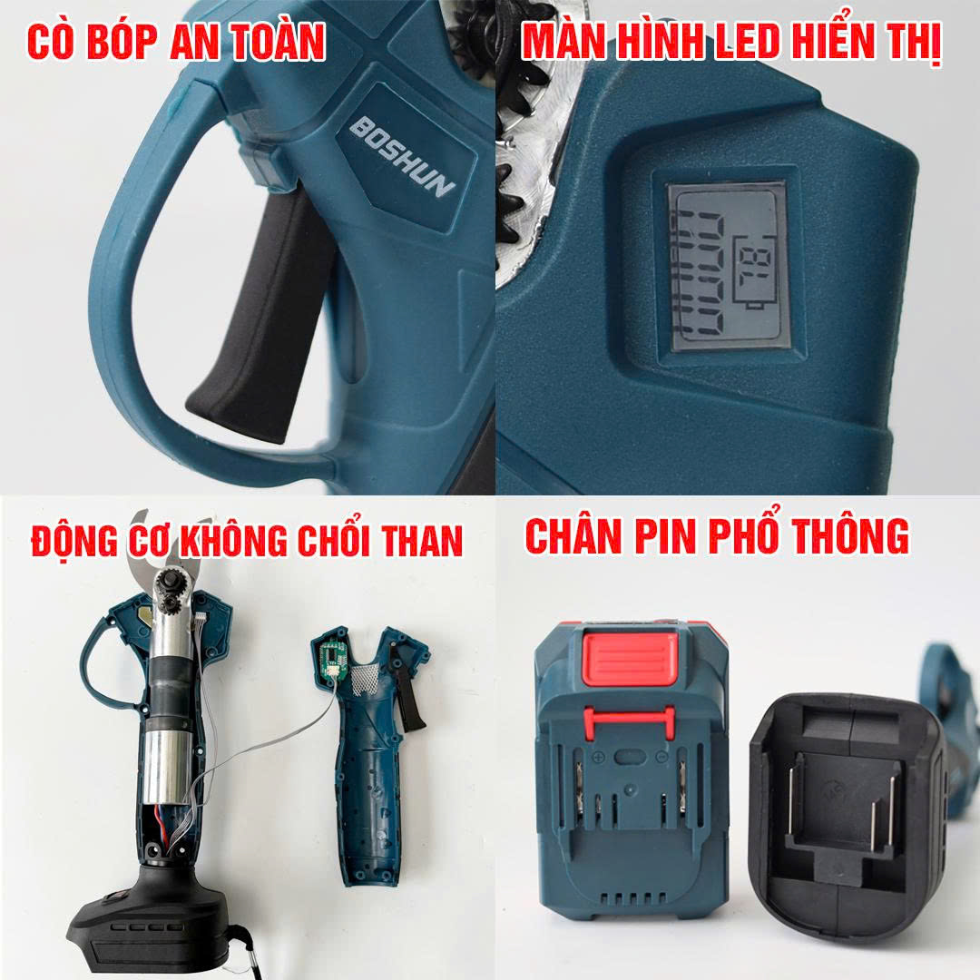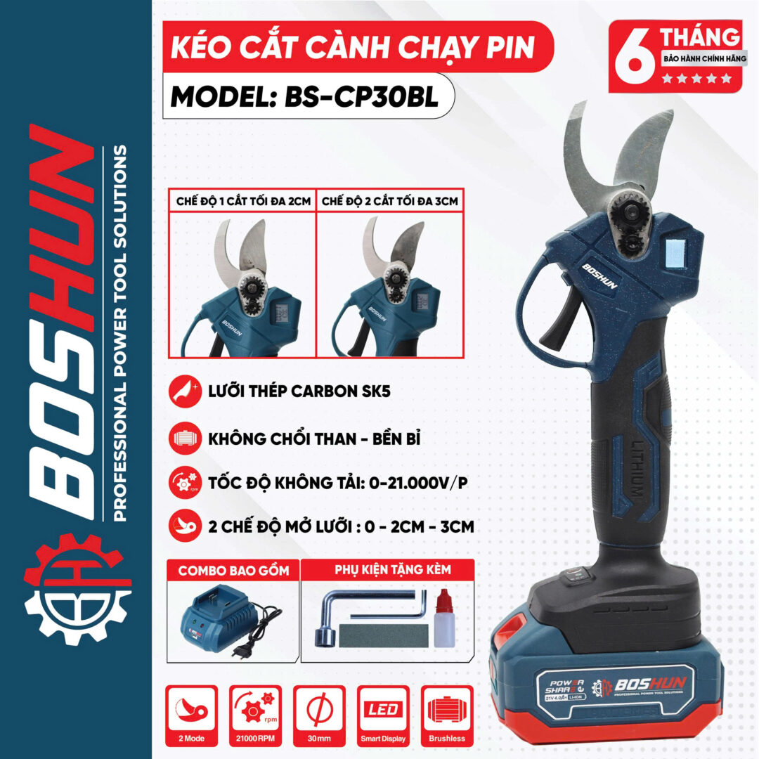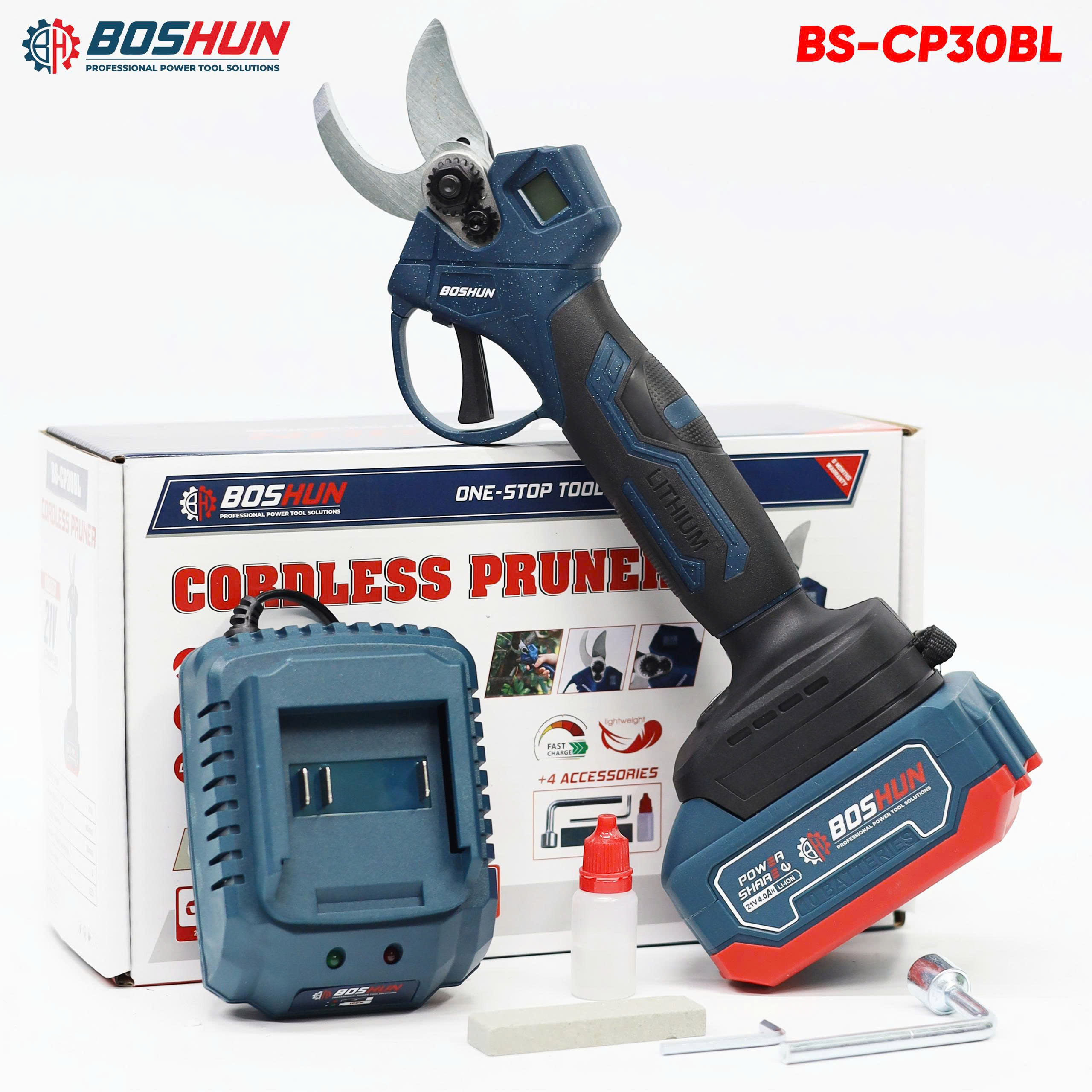 Chính hãng Kéo Cắt Cành BOSHUN BS-CP30BL – Máy Cắt Cành Không Chổi Than, Hợp Kim, Pin Khủng 21V