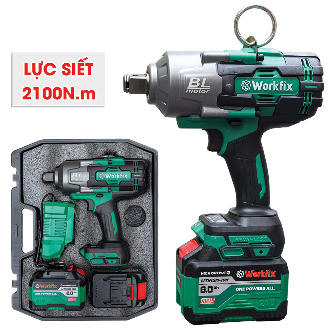 - Máy siết bulong WORKFIX đa năng được trang bị kèm theo 1 sạc nhanh 220V. Công suất sạc nhanh chóng sạc đầy pin chỉ trong 1 giờ. Tích hợp chip thông minh điều áp tự ngắt khi đầy pin đảm bảo an toàn và gia tăng tuổi thọ pin
