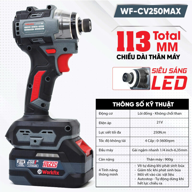 Máy chuyên vít có lực siết 250N cực mạnh, cho phép siết mở bulong ô tô, xe tải, vặn vít , lắp ráp nội thất