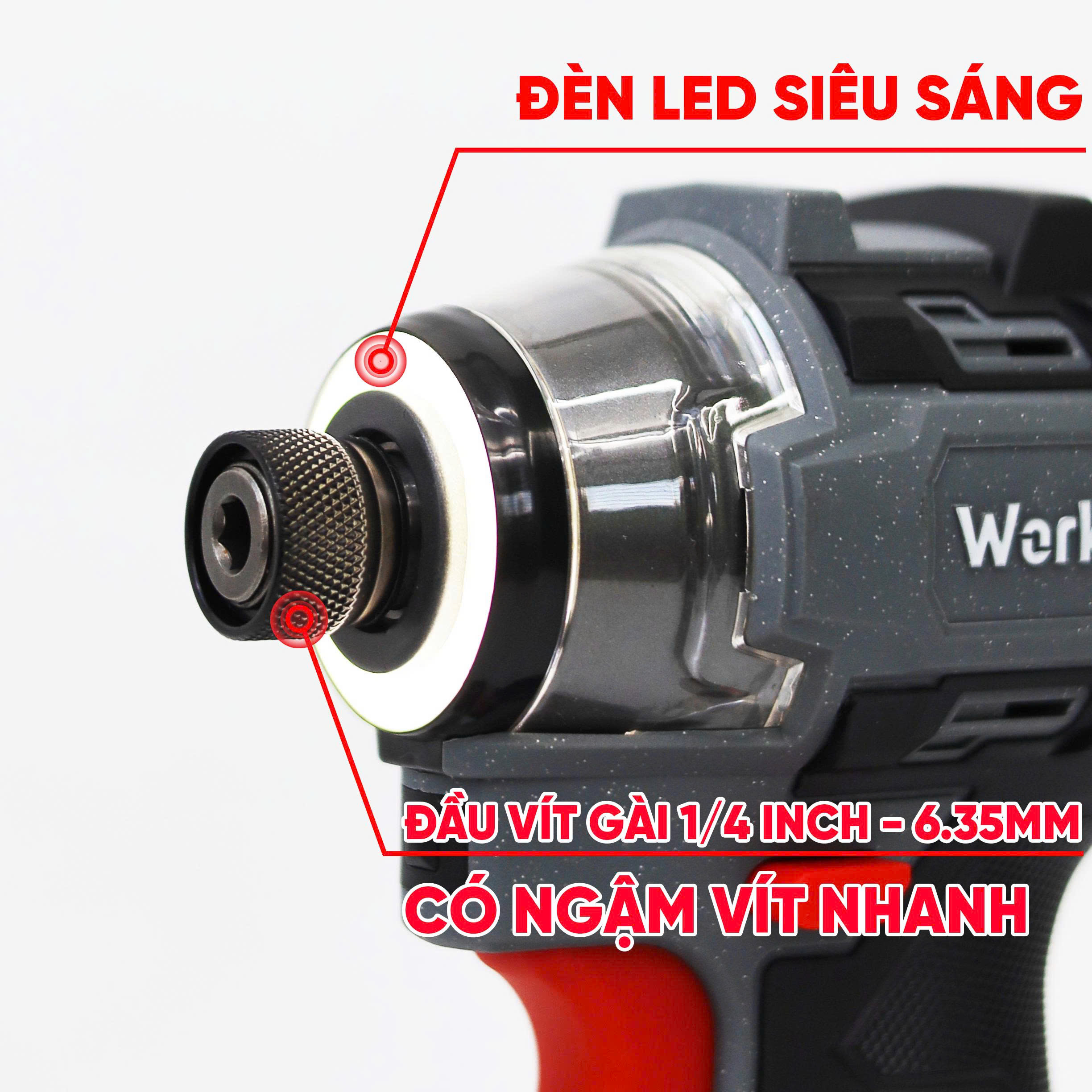 Máy chuyên vít Workfix trang bị 2 pin 4,0 Ah mỗi pin thiết kế mạch 4 mosfet cho dòng xả cao tránh ngừng ngắt khi sử dụng, có mã vạch trên từng cell và đèn báo pin riêng biệt trên mỗi quả pin, thời gian làm việc liên tục từ 4- 5h