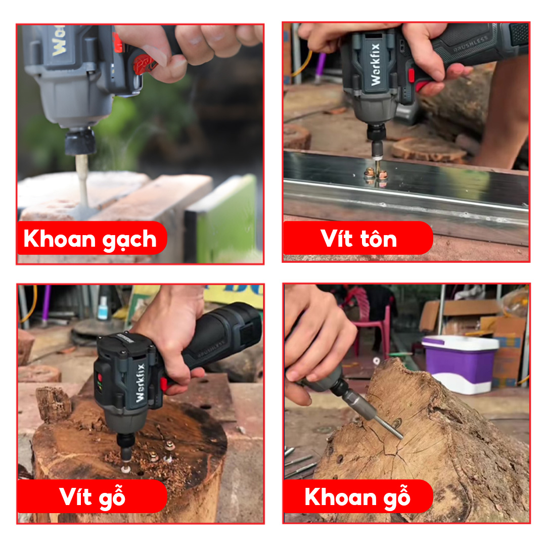– Chức năng: Chuyên Bắt vít, Bắn tôn, Siết mở Bulong, Ốc máy, Ốc ô tô, Ốc nồi xe tay ga, Khoan,…