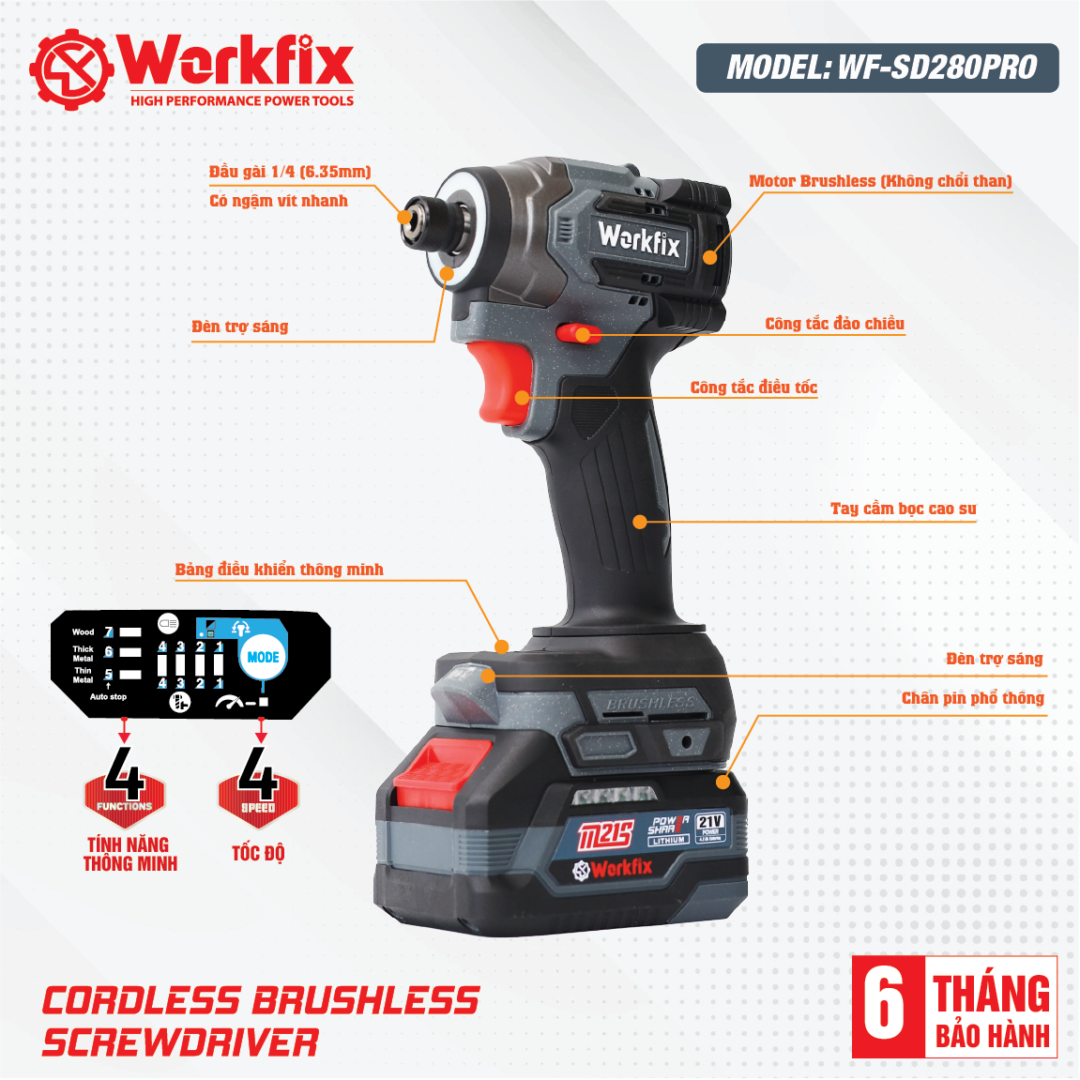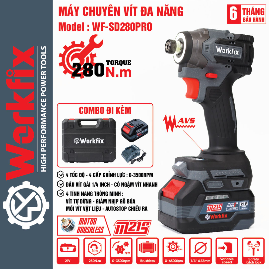 Máy Chuyên vít Workfix WF-SD280PRO, Lực siết 280Nm, Giảm rung AVS