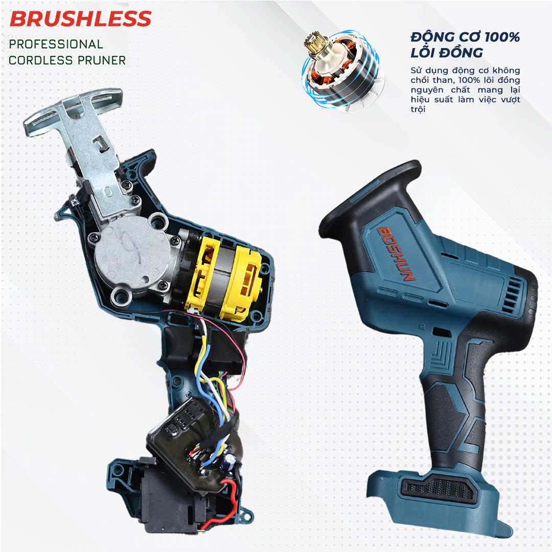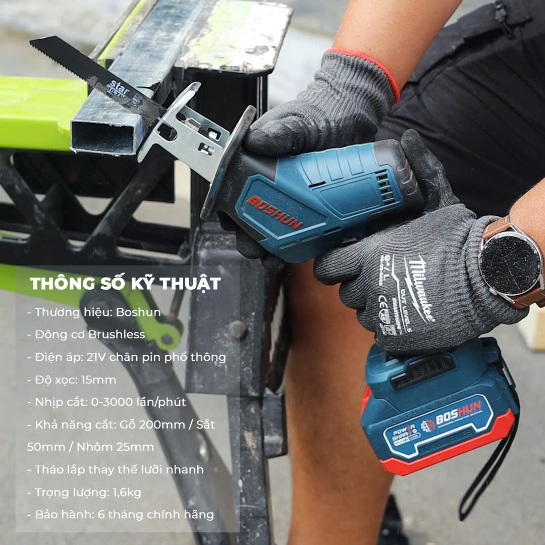 Máy cưa kiếm Boshun được thiết kế với động cơ 100% lõi đồng đảm bảo máy có chất lượng tốt, độ bền cao, có hiệu suất mạnh mẽ, thiết kế an toàn, tiện dụng
