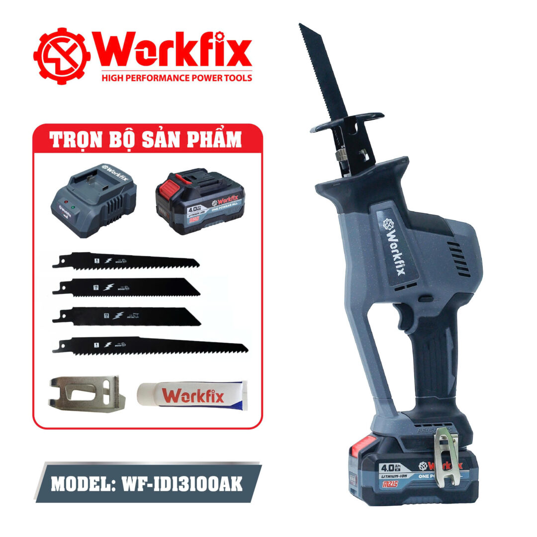 Tặng ngay bộ 4 lưỡi cưa thép cao cấp: 1 lưỡi cưa gỗ răng to; 1 lưỡi kim loại răng mịn; 1 lưỡi đa năng và 1 lưỡi phá dỡ