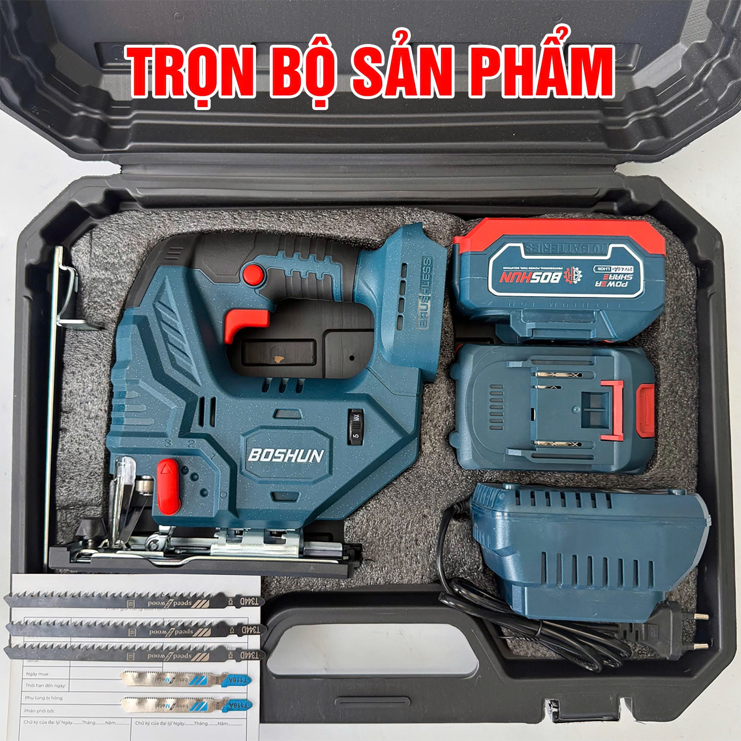 Tặng ngay 5 lưỡi cưa đa năng kho mua máy cưa lọng pin Boshun giúp cưa gỗ, cắt săt, cắt nhựa,…