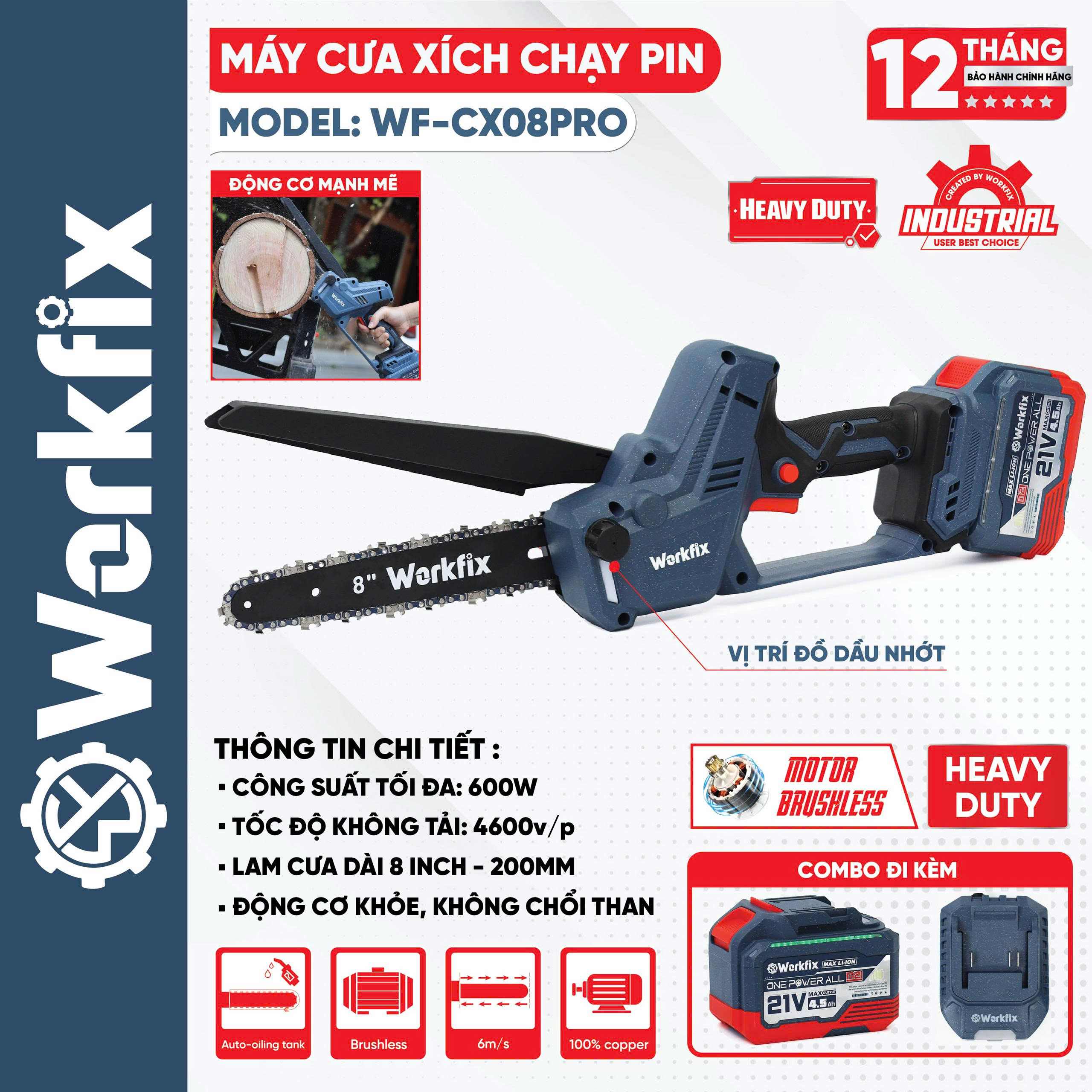 Chân pin phổ thông – dễ thay thế, dùng chung pin Workfix 21V