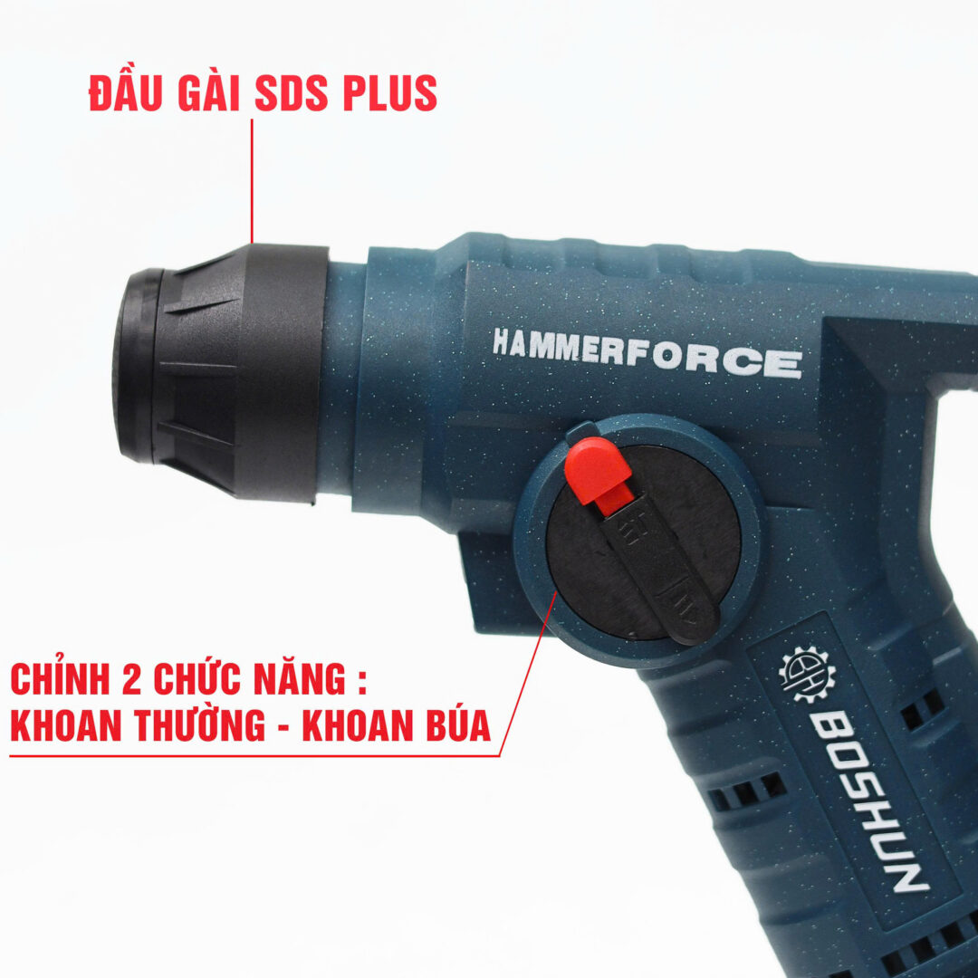 Máy khoa bê tông có đầu gài SDS PLUS (Special Direct System) thế hệ mới nhất, cho phép thay mũi khoan nhanh chóng mà không cần dụng cụ hỗ trợ, gài mũi máy khoan bê tông tới 28mm