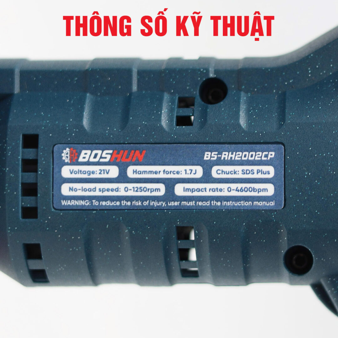 Máy khoan bê tông điện BOSHUN BS-RH2002CP giúp thi công nhanh, tiết kiệm thời gian, nâng cao hiệu quả và độ chính xác.