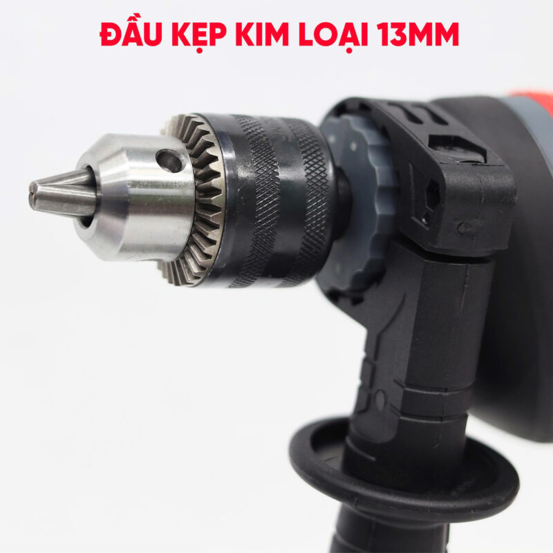 Đầu kẹp kim loại cực chắc chắn. Đầu kẹp 13mm giúp thỏa mái thi công trên mọi công trình