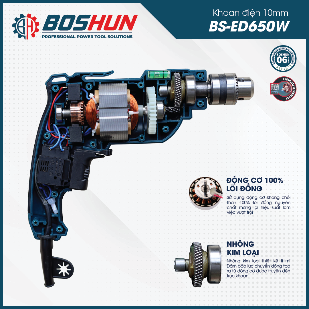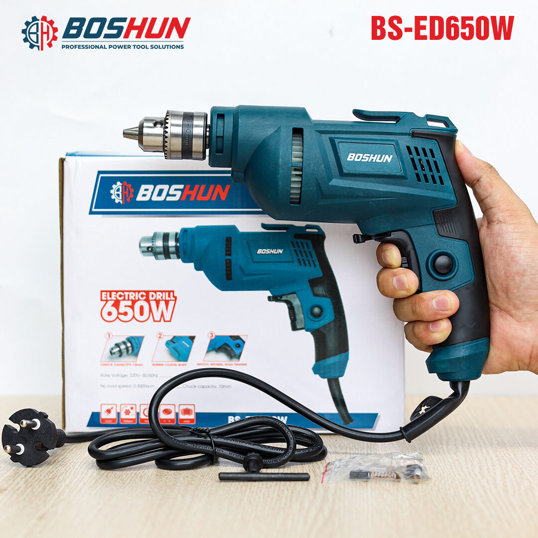 Máy khoan điện 10MM Boshun BS-ED650W, Máy khoan tường, sắt, gỗ, bắt vít, Bảo hành chính hãng