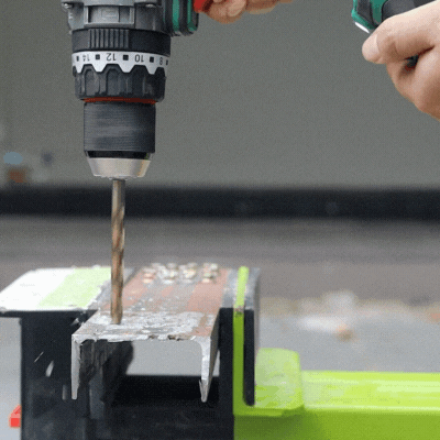 Đầu kẹp kim loại 13mm – Bền bỉ chắc chắn – tháo mở mũi nhanh chóng. Có khóa trục giúp giữ chặt mũi khoan hơn