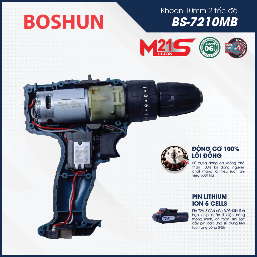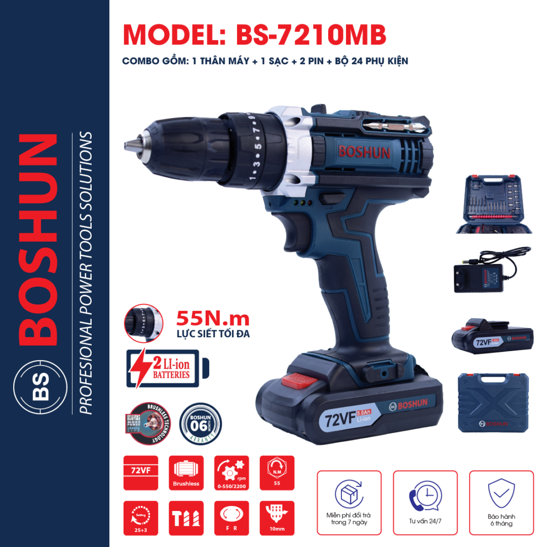 Máy Khoan Pin Boshun BS-7210MB – 3 Chức Năng (Khoan, Búa, Bắn Vít)