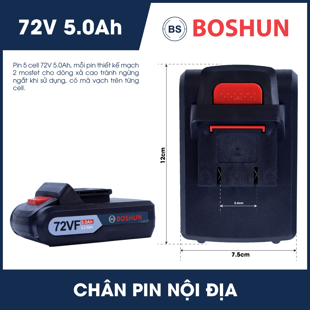 - Dung lượng pin: 72v/5.0Ah