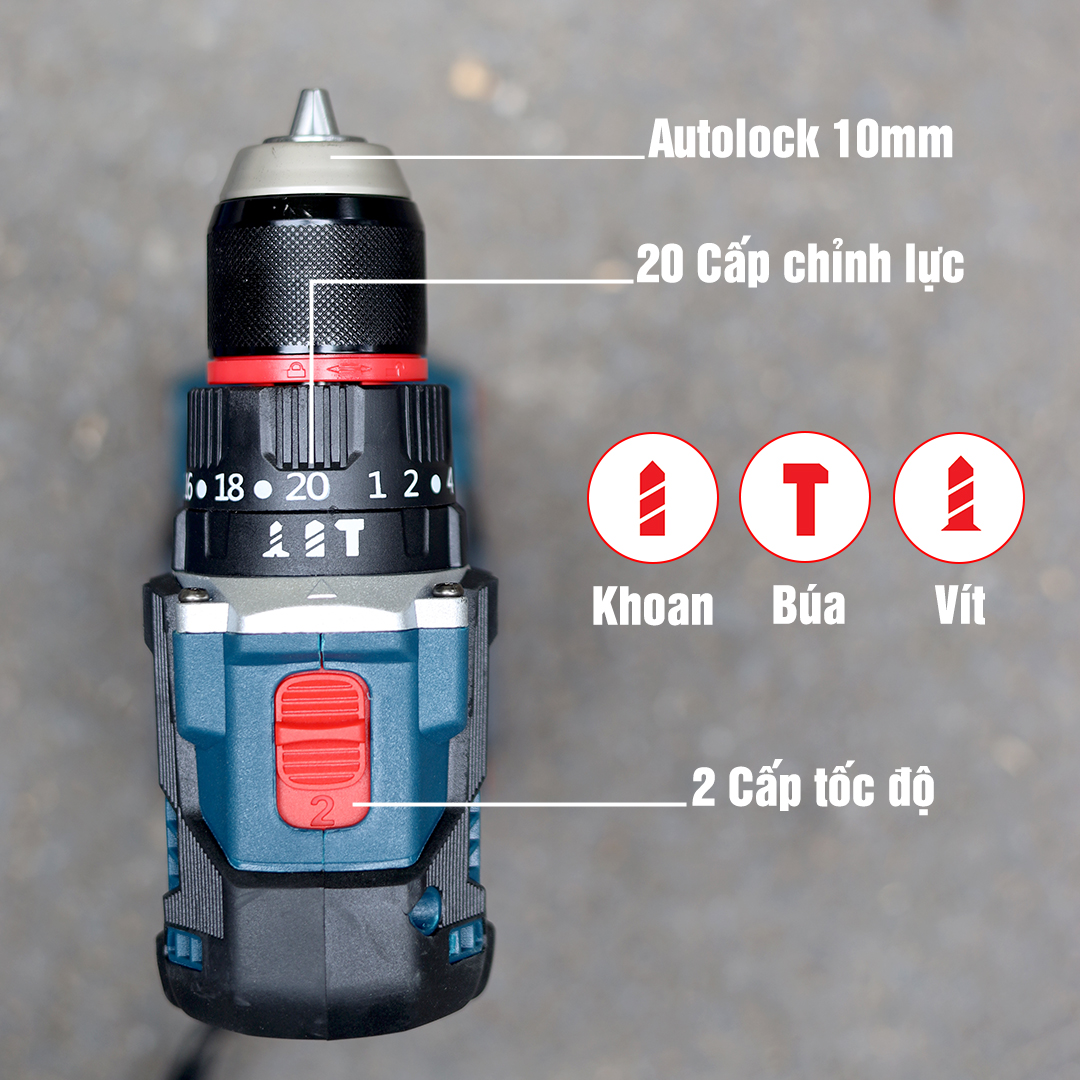 Máy khoan pin có 3 chế độ làm việc chuyên nghiệp: