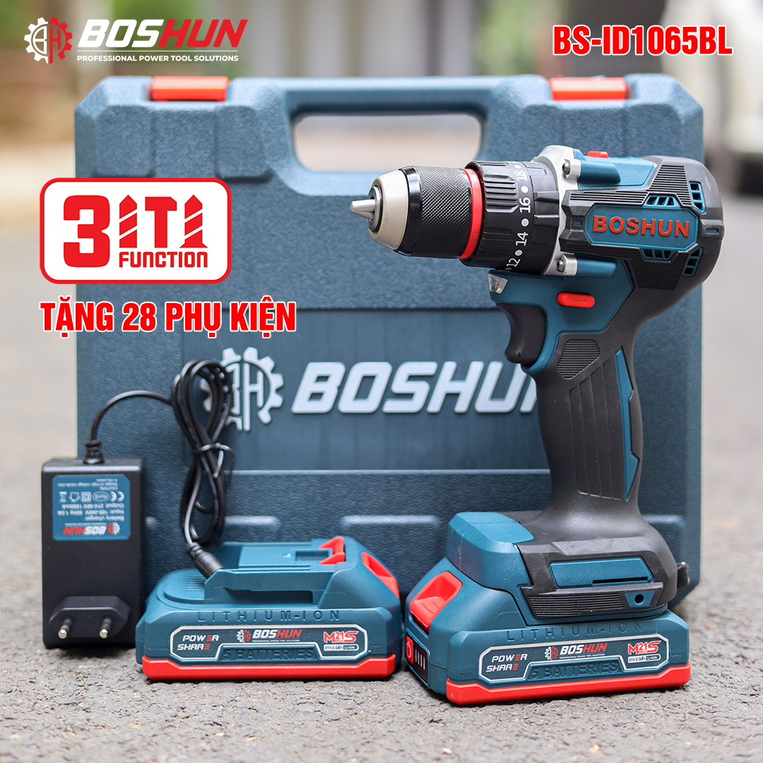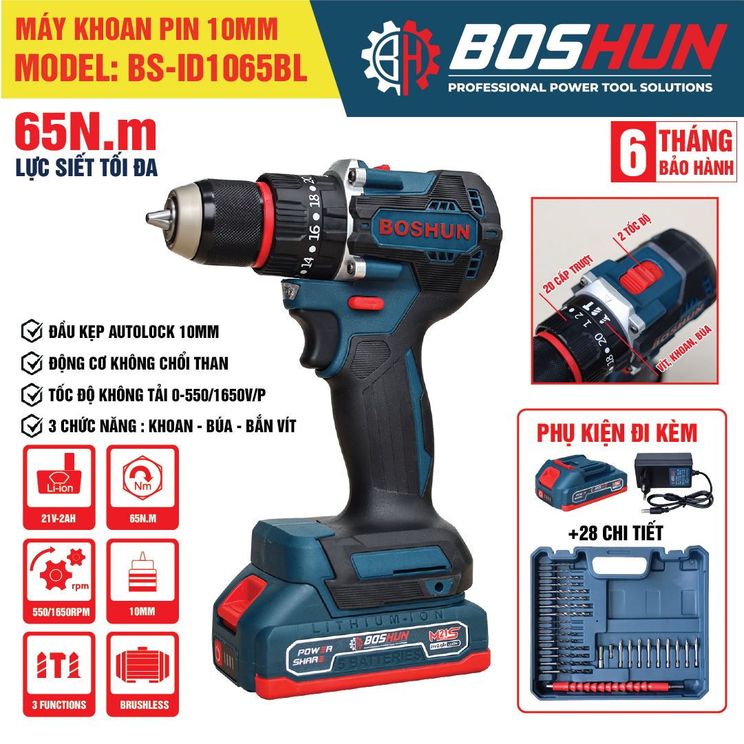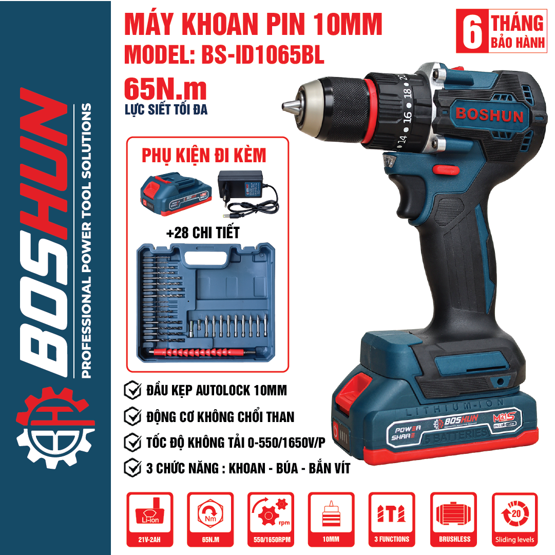 Máy khoan pin Boshun có lực khoan tới 65N có thể khoan, vít gạch, gỗ, săt cực khỏe