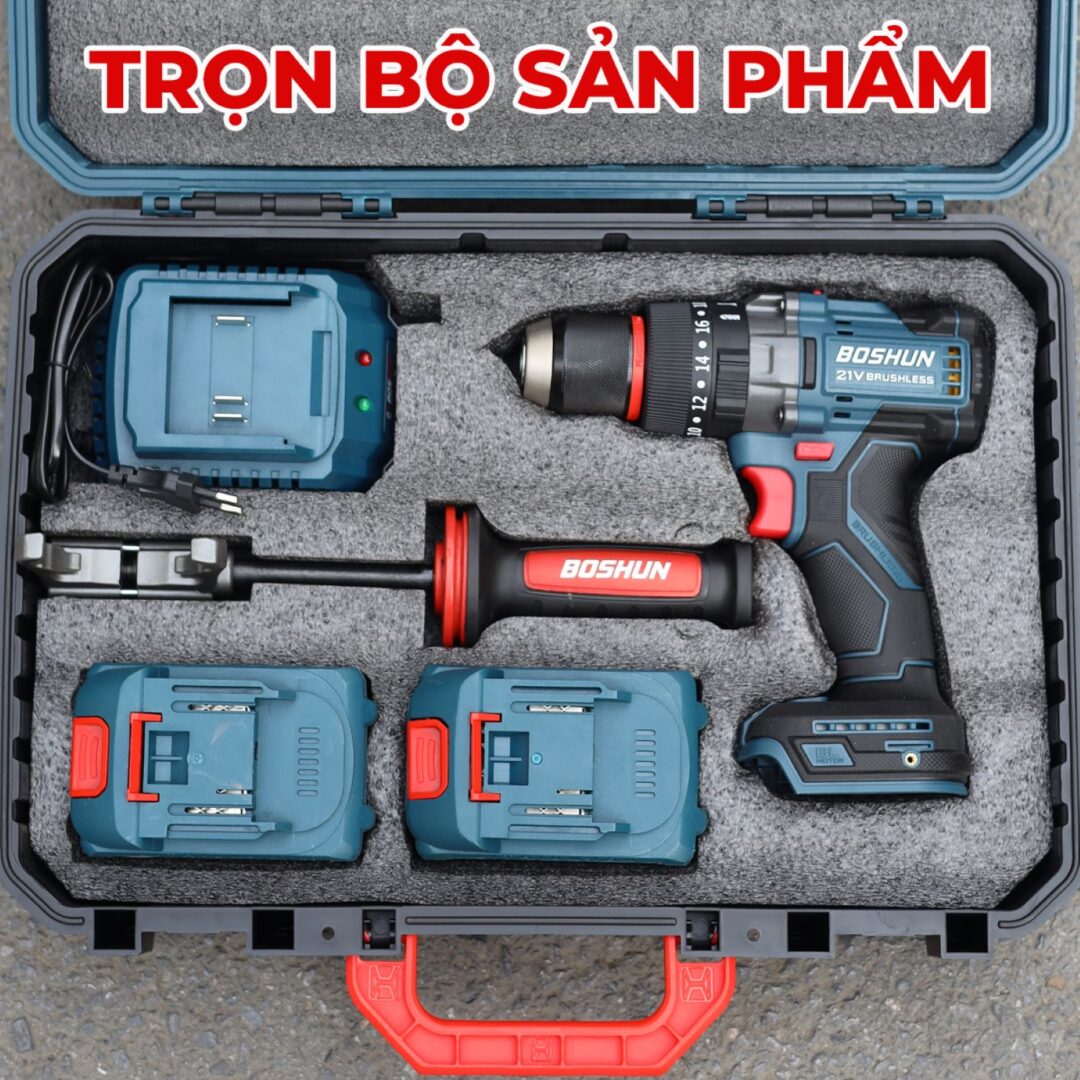 - 01 Thân máy khoan Boshun. Có đèn led hỗ trợ sáng, có điều tốc.