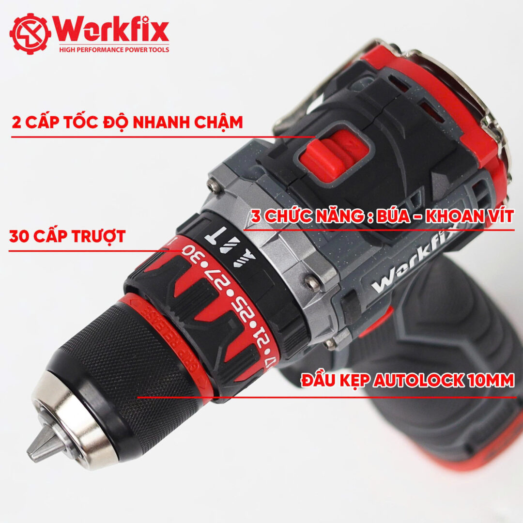 - 3 CHỨC NĂNG: Khoan thường; Khoan búa; Bắn vít
