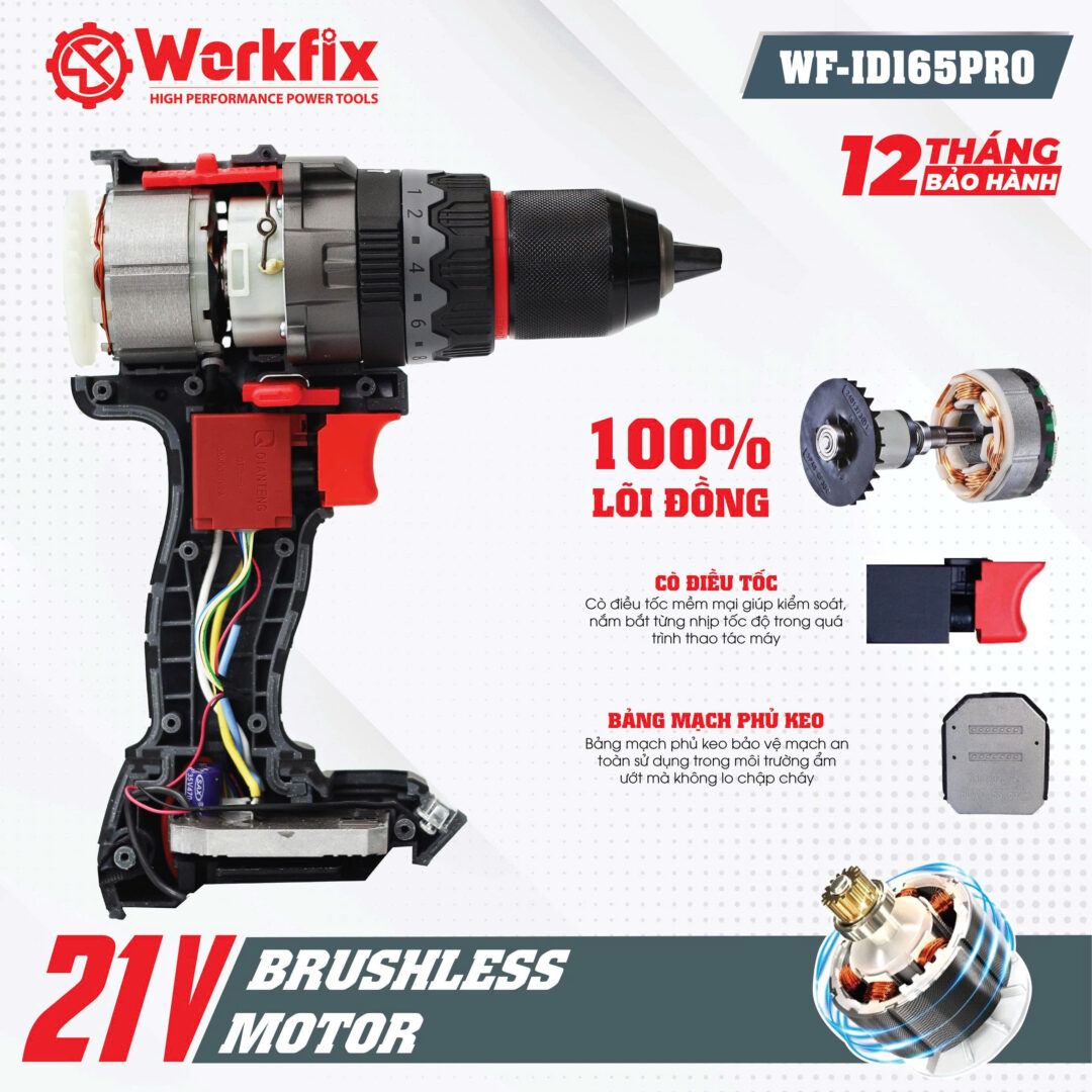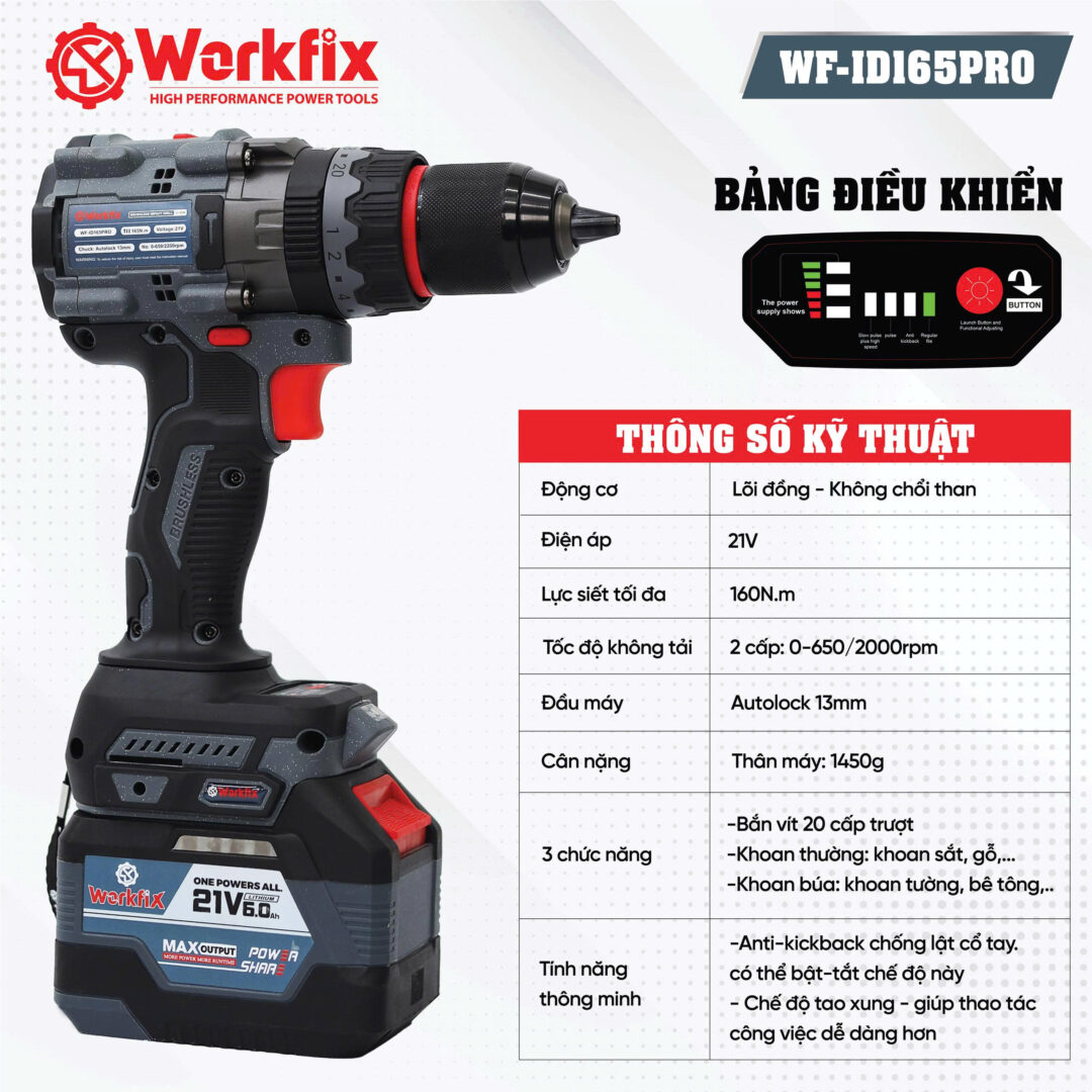 Máy Khoan Pin Workfix 13mm 165N – Chuyên Rút Lõi, Khoan Tường, Bê Tông, Bắt Vít, Bắn Tôn,…
