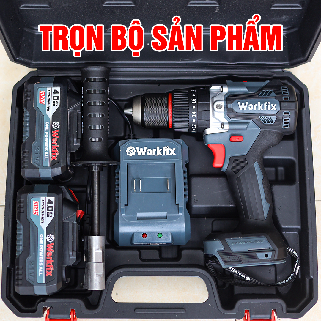 Với lực siết 95N.m, tốc độ không tải 2000 v/p. Máy khoan WORKFIX sở hữu đầy đủ 3 chức năng: