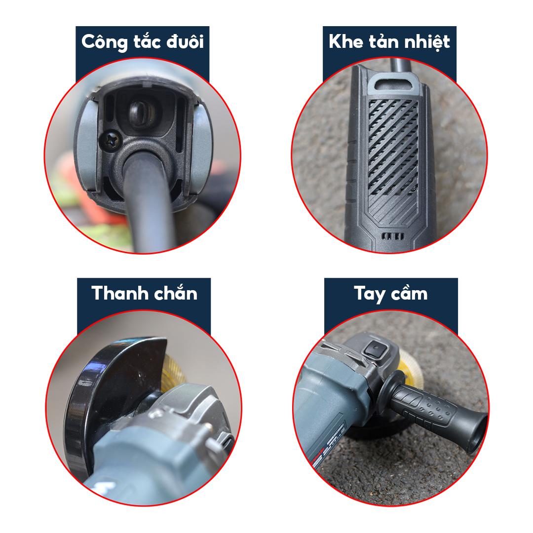 – An toàn khi sử dụng, nhờ công tắc được bố trí thuận tiện và nắp chắn bảo vệ đĩa mài.