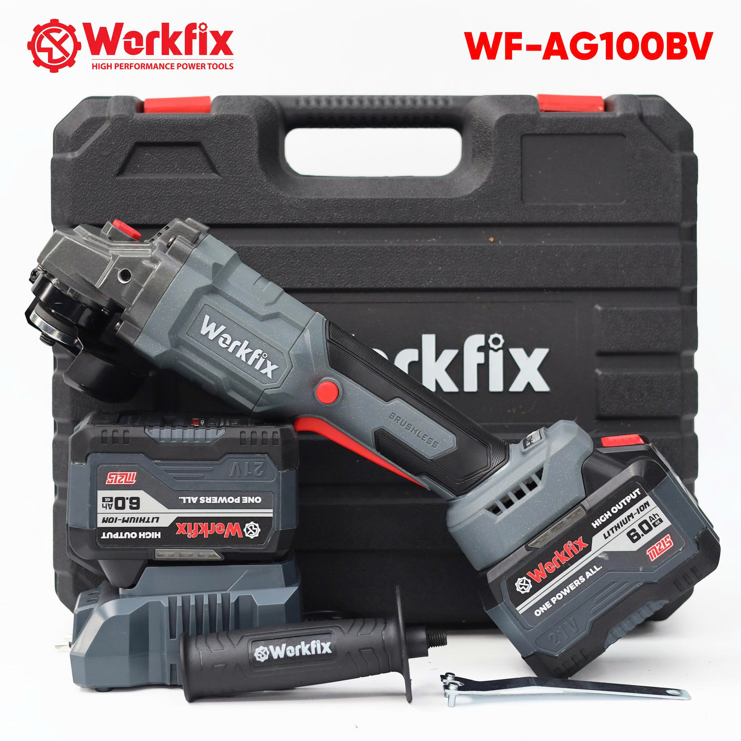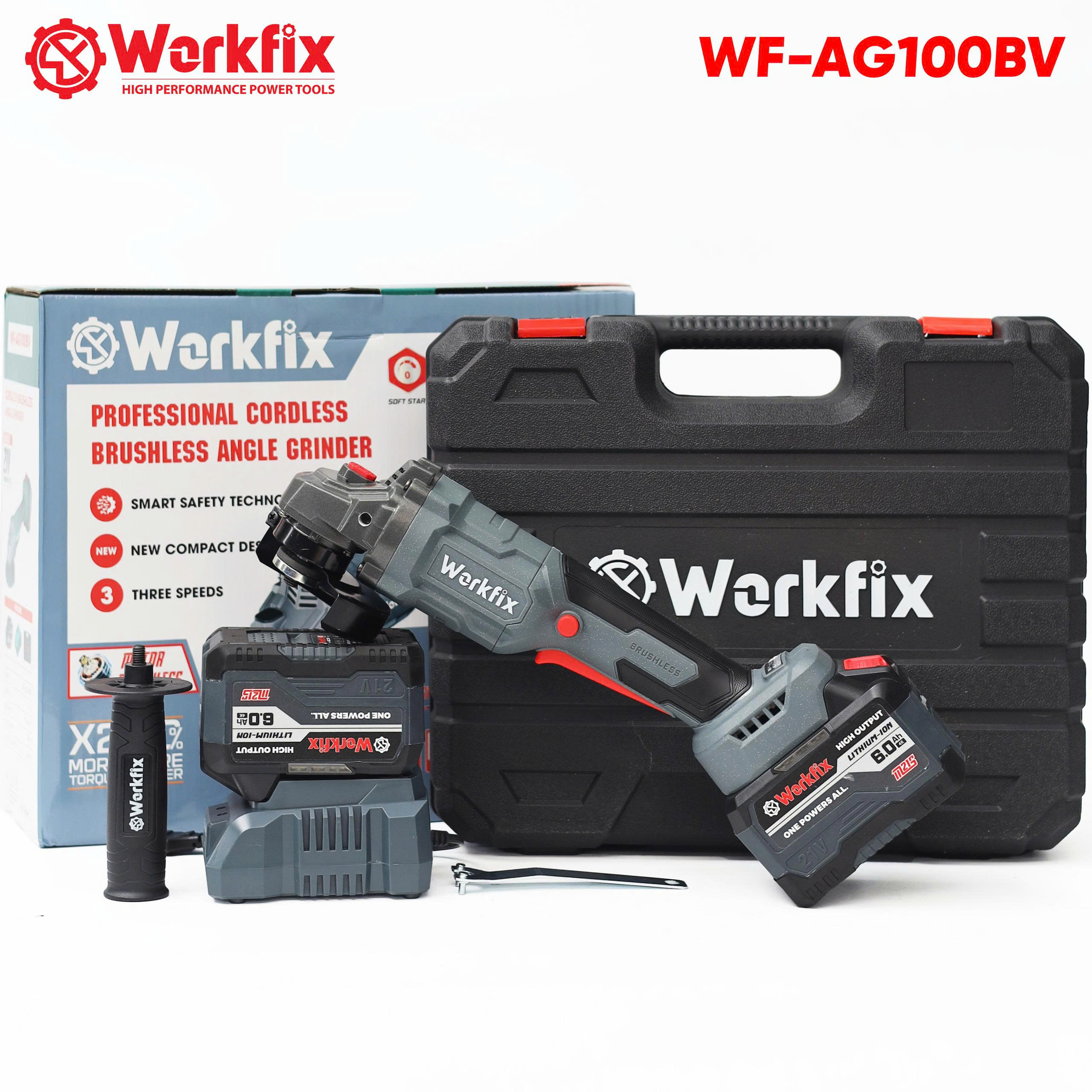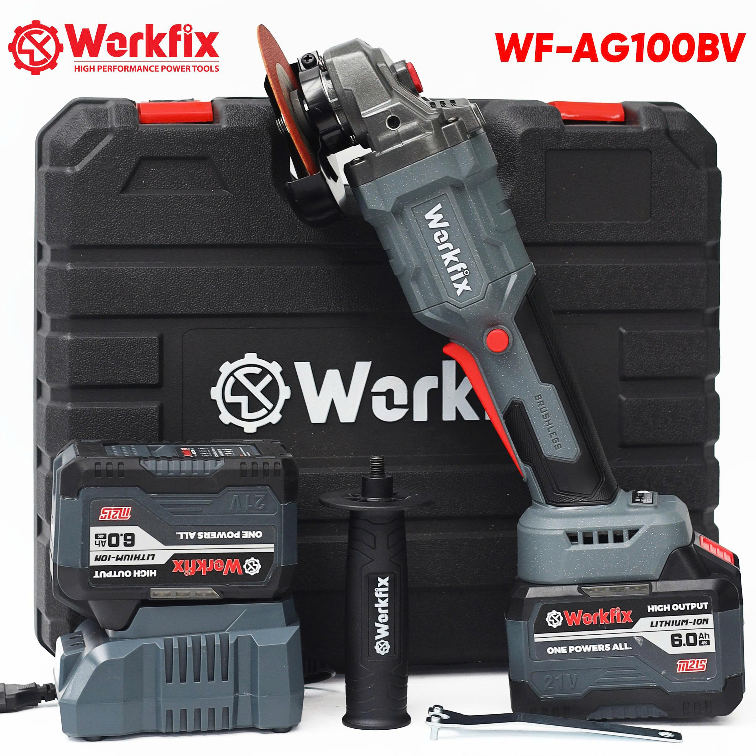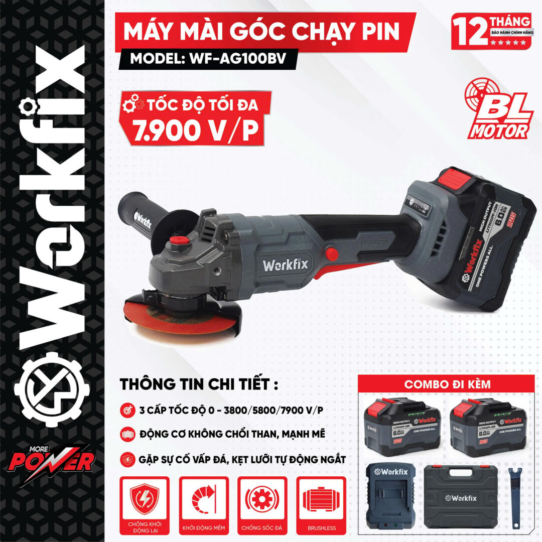 Máy Mài, Cắt Pin Công Tắc Bóp Workfix WF-AG100BV Không Chổi Than 100% Lõi Đồng, Kèm Phụ Kiện – Máy Cắt, Mài