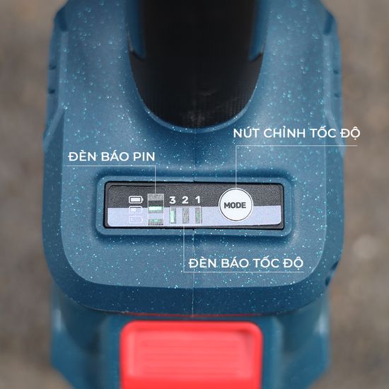 Bảng điều khiển có đèn báo pin trực tiếp, có điều chỉnh 3 cấp tốc độ phù hợp với nhu cầu sử dụng