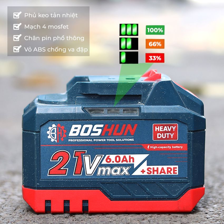 Pin 15cell dung lượng lớn dùng liên tục trong 4-5h, sạc nhanh 2A trong 1h