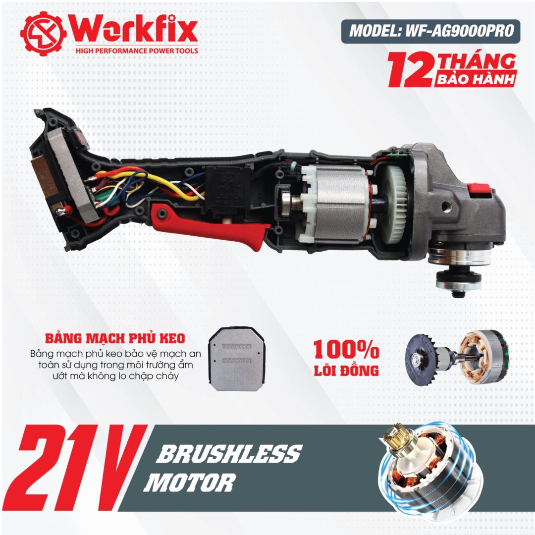 Máy cắt cầm tay Workfix WF-AG9000PRO, Có aniti_kickback, Chống khởi động lại, Chống sốc đá – Ép tải >80A