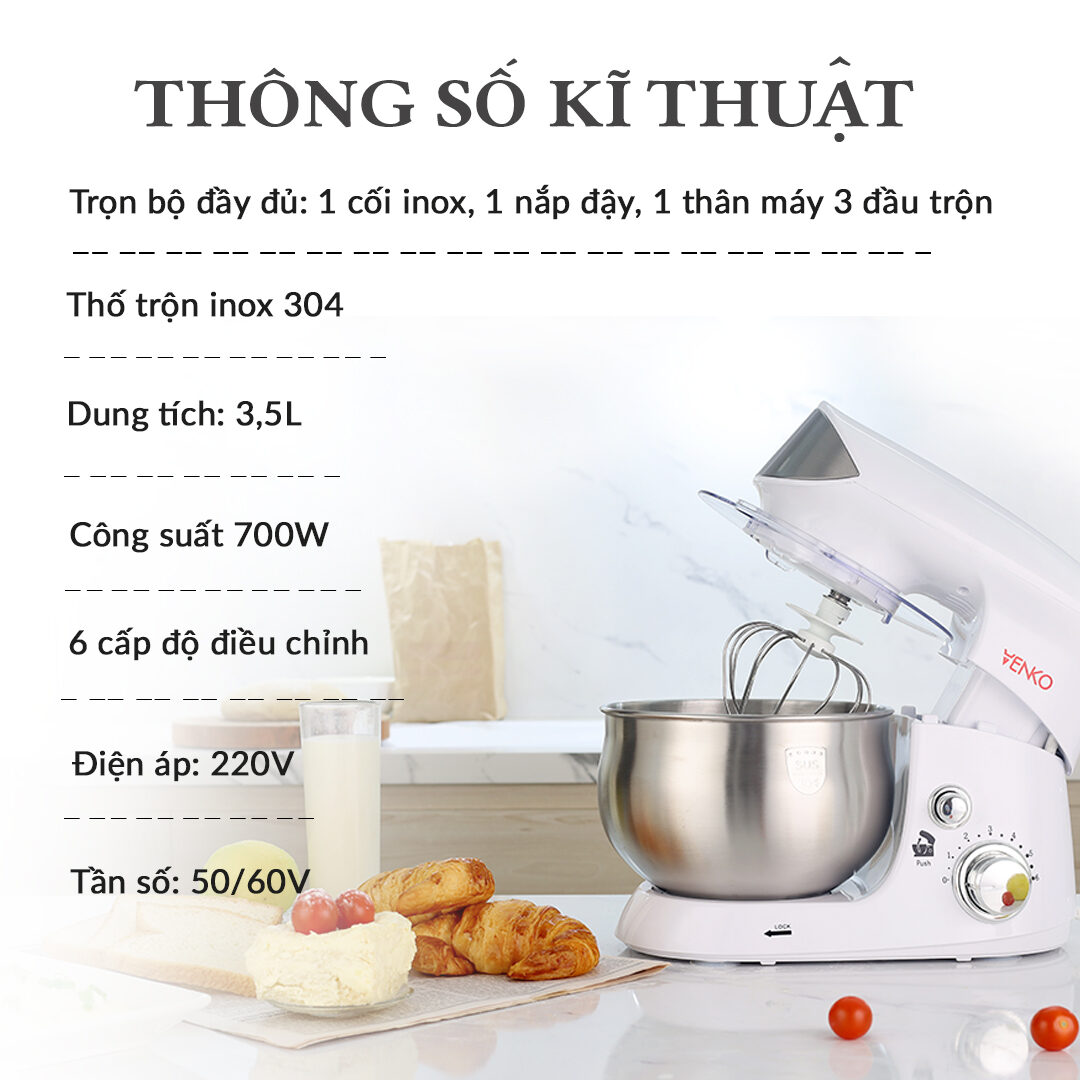 Máy đánh bột Venko cài đặt sẵn 6 cường độ trộn. Sử dụng máy đánh bột này bạn có thể điều chỉnh độ nhuyễn, hòa quyện bột, trứng, nhân các loại nem, giò…. theo ý muốn.