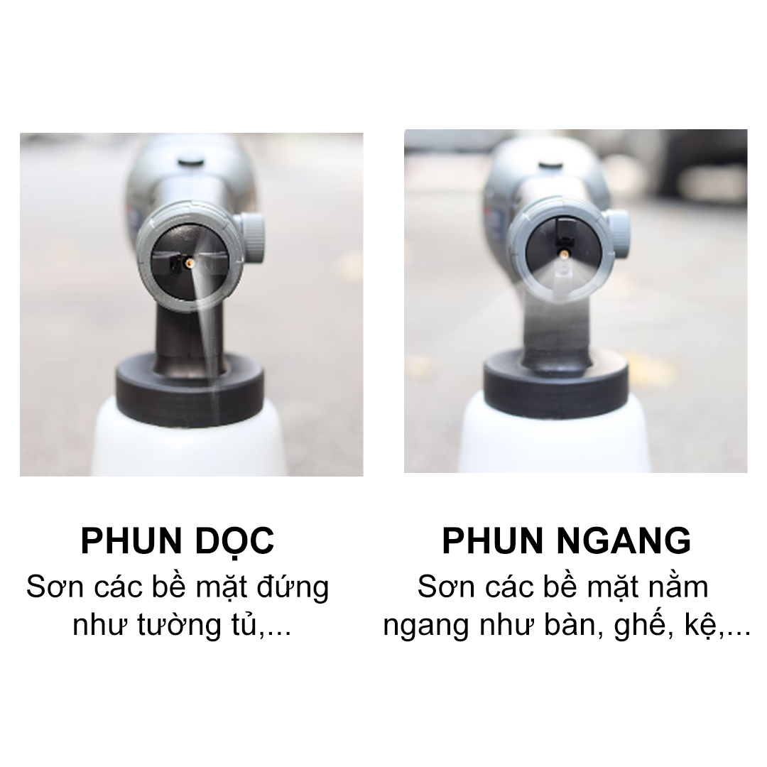 Máy phun son Workfix có thể phun với 2 chế độ: phun ngang, phun dọc