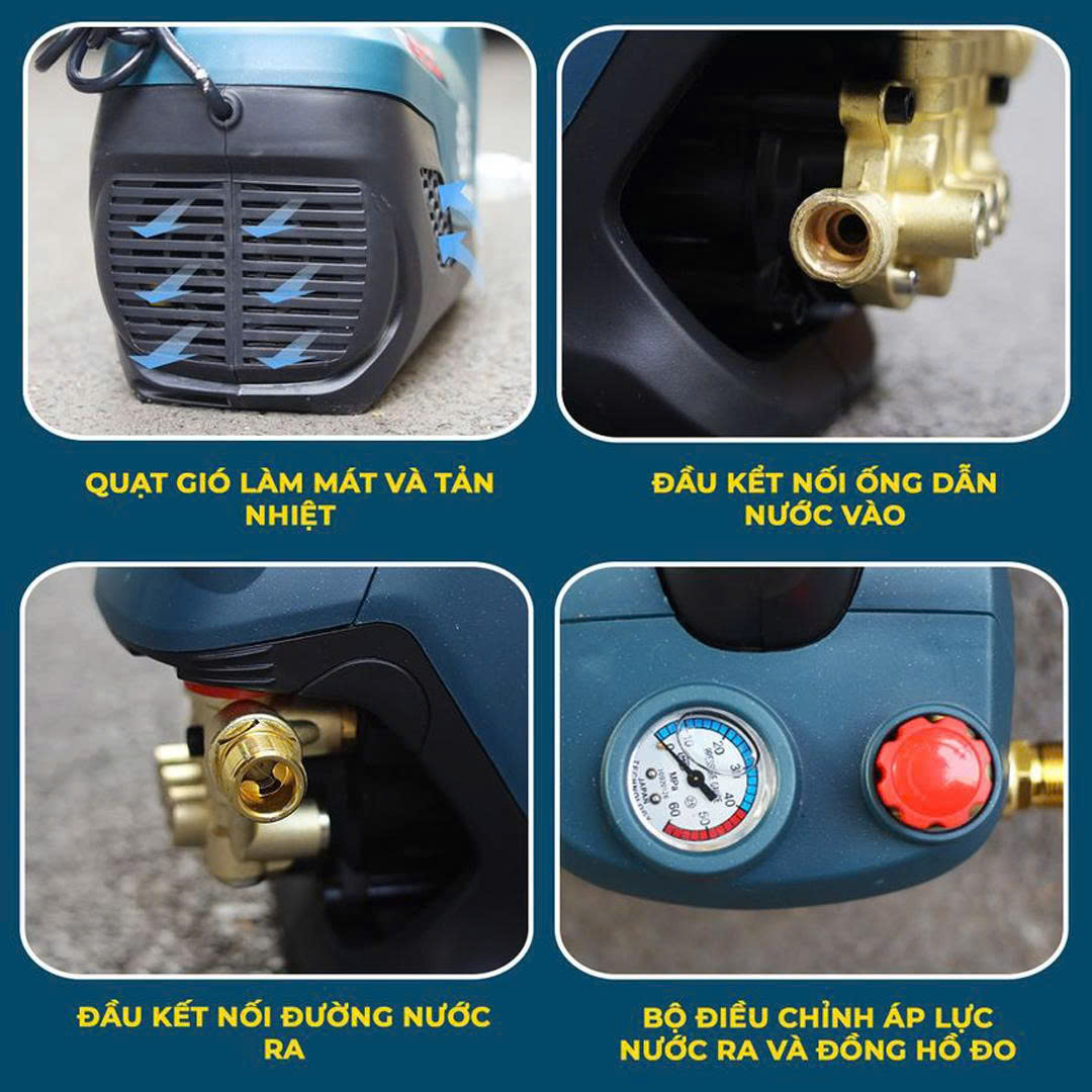 Máy rửa xe Boshun PW3500W được trang bị mô tơ lõi đồng cảm ứng từ siêu êm, siêu bền bỉ cho đầu ra lưu lượng nước 15 lít/phút và công suất tối đa 3500w
