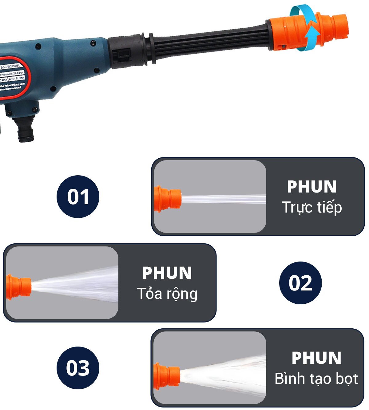 Máy Rửa Xe Boshun BS-PW2136BL – Không Dây, Áp Lực Cao