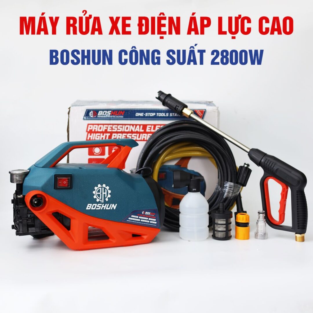 Máy rửa xe chỉnh áp BOSHUN BS-PW2800W, Công suất 2800W, Dây Cao Áp 12m, Kèm Bộ Phụ Kiện