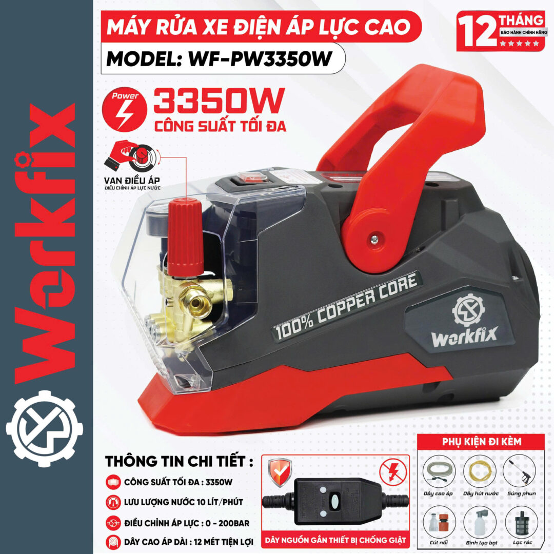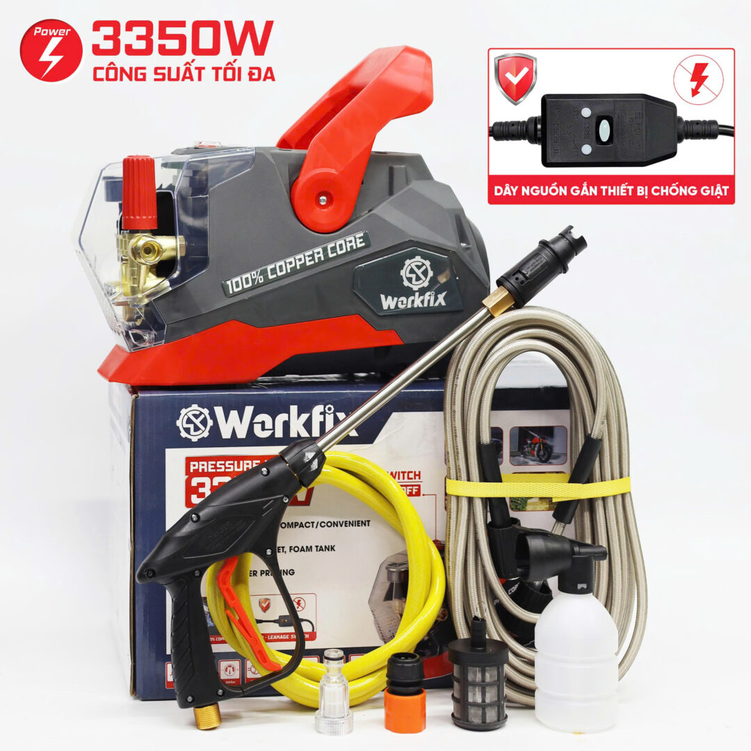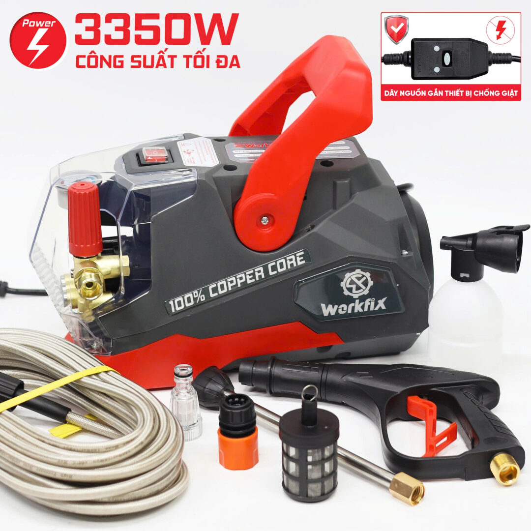 Máy rửa xe có áp lực cực lớn lên đến 200bar, xịt sạch mọi loại vết bẩn cứng đầu.