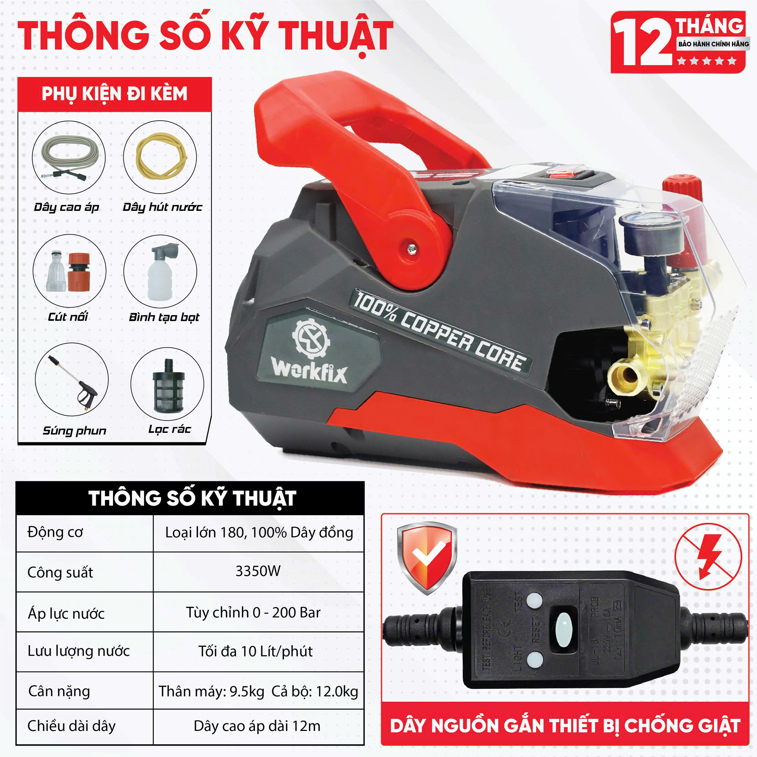 | Chiều dài dây cao áp | 12m |