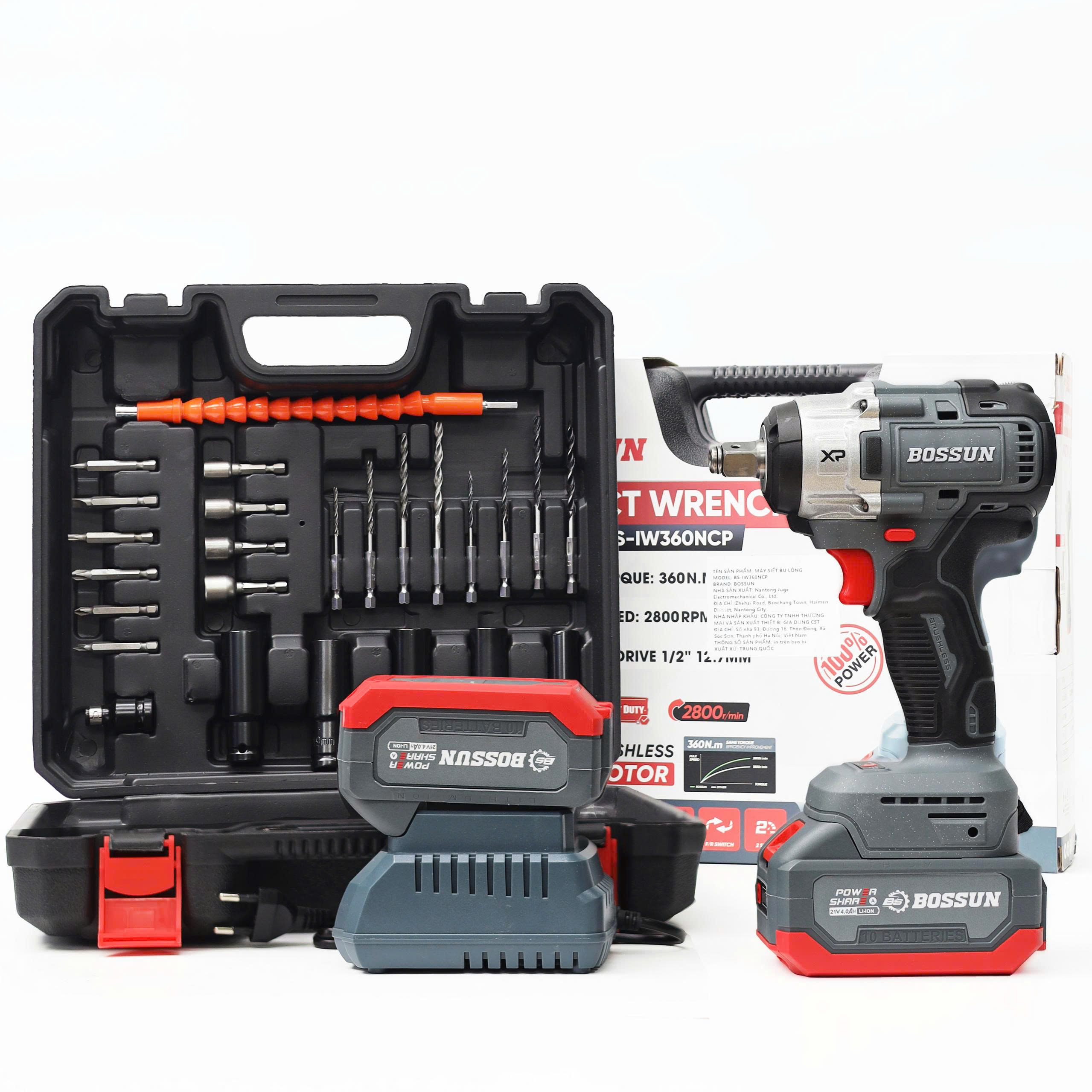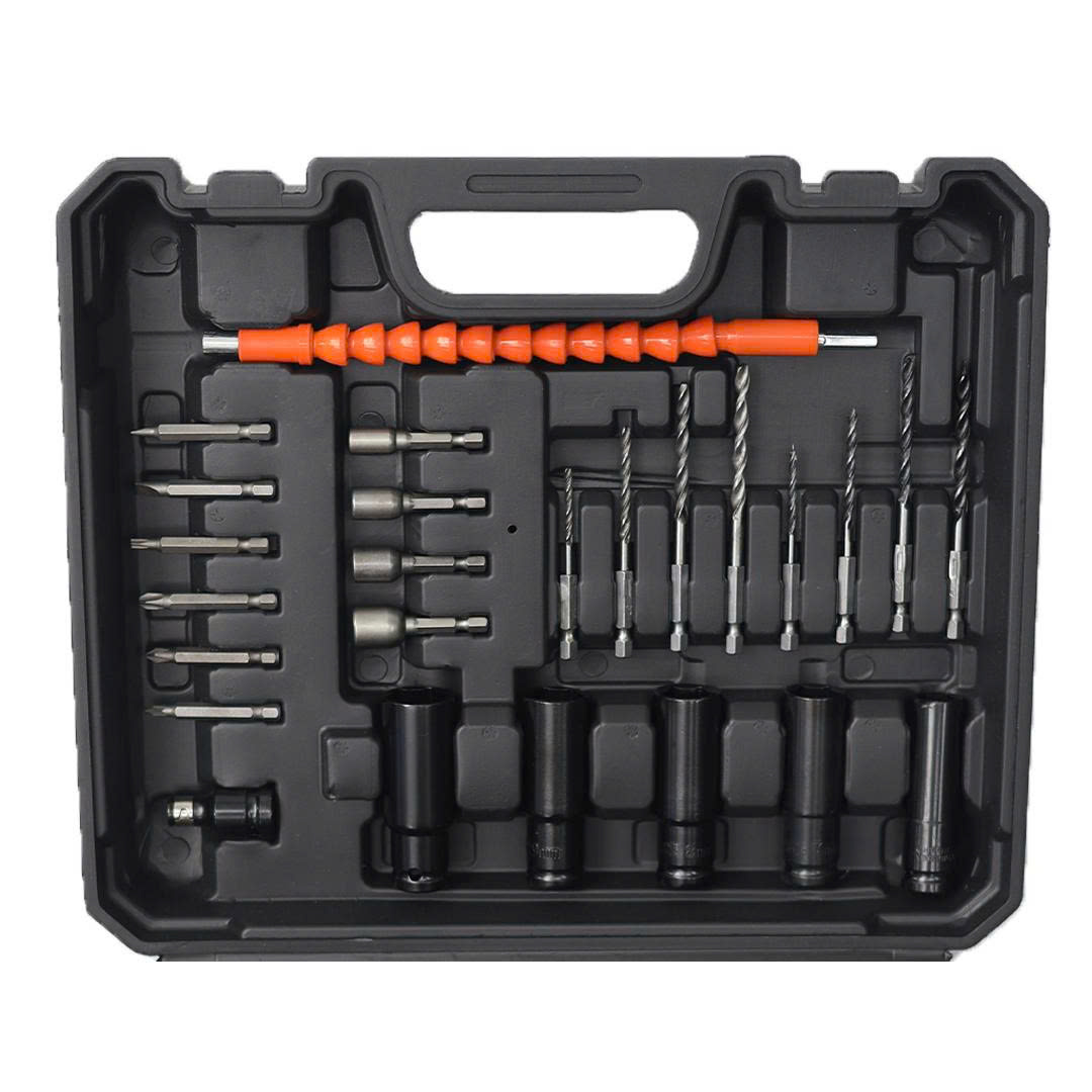 - Quà tặng 24 phụ kiện: 5 đầu khẩu; 11 mũi bắt vít 14/17/19/21/22mm; 8 mũi khoan; 1 đầu chuyển bắt vít