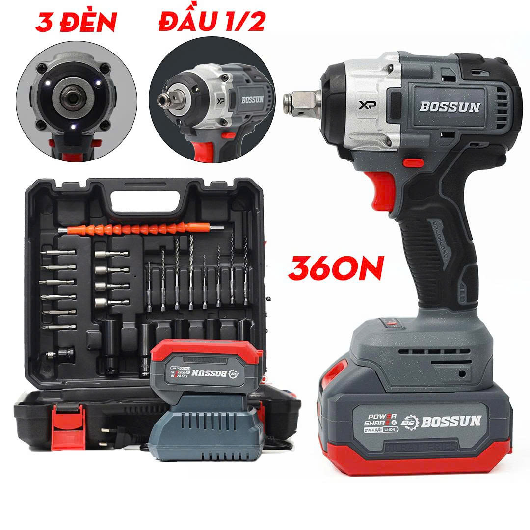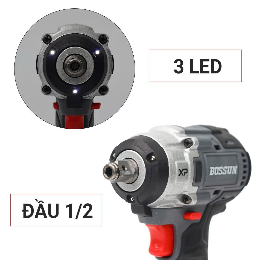 Đầu siết bulong đầu rỗng – tiện lợi khi dùng mũi bắt vít, bắn tôn, mũi khoan. Đặc biệt trang bị 3 đèn led chiếu sáng
