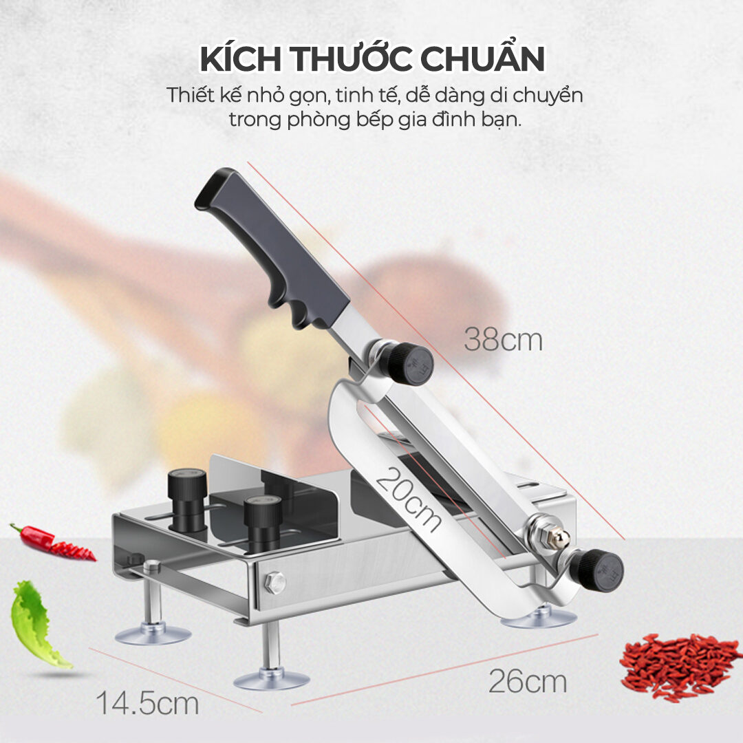 Vừa thái lát mỏng thịt đông lạnh, thịt sống, giò, rau củ quả; vừa có thể chặt gà, chặt xương.