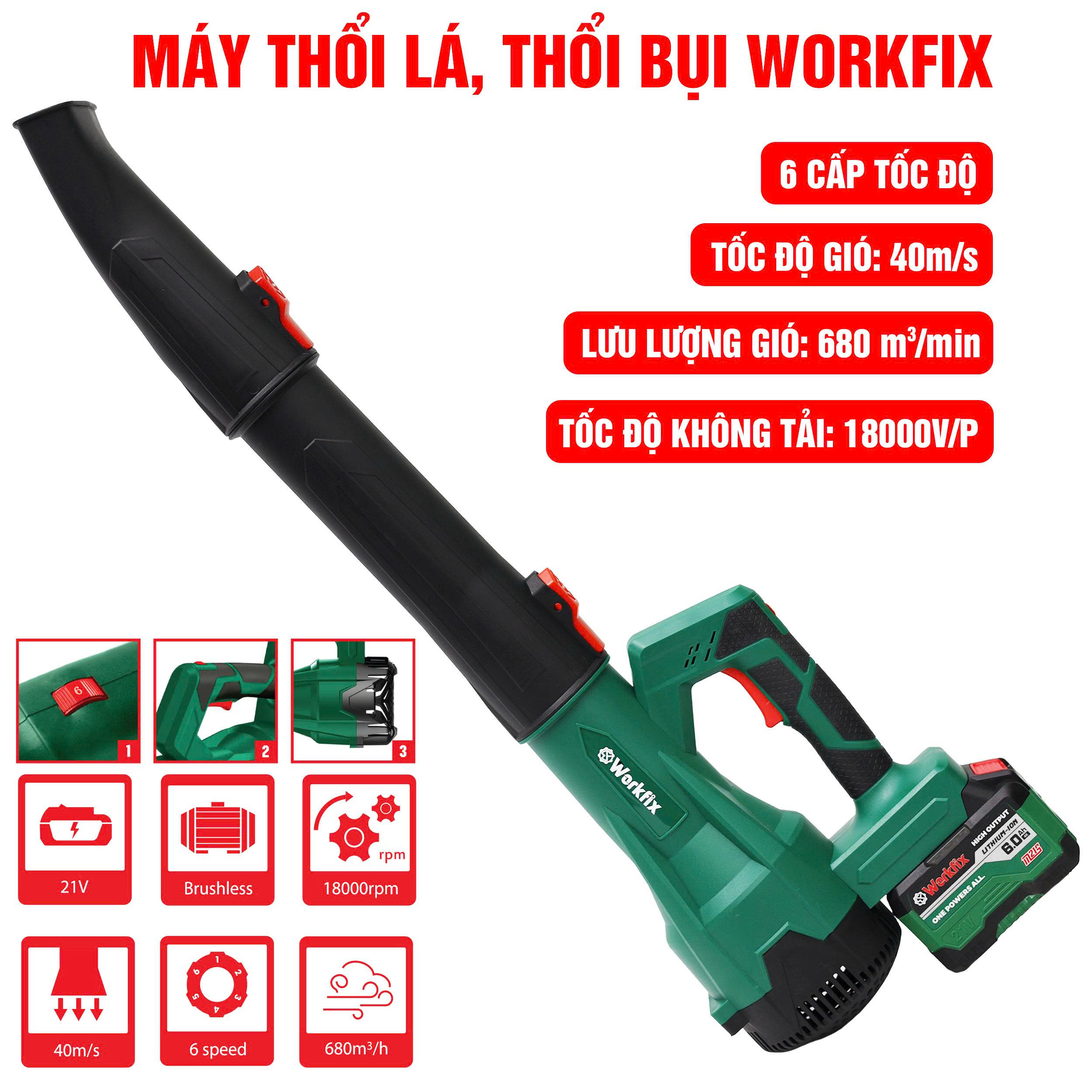 Máy thổi bụi cầm tay workfix có 6 tốc độ gió lớn nhất lên đến 40m/s đáp ứng mọi nhu cầu làm sạch, có thể thổi đi các bụi bẩn nằm trong góc khuất