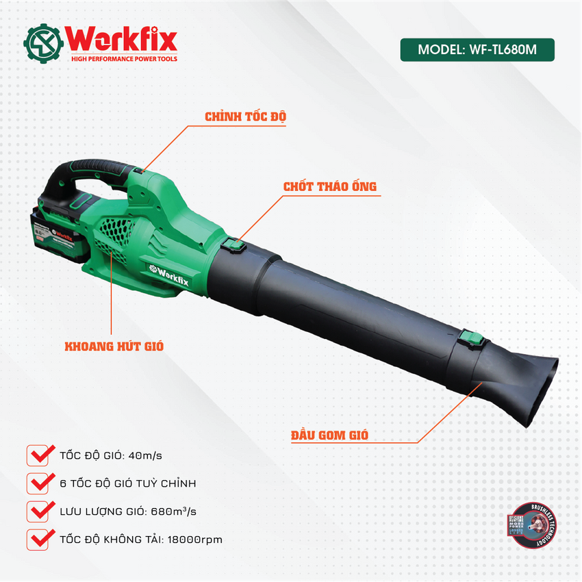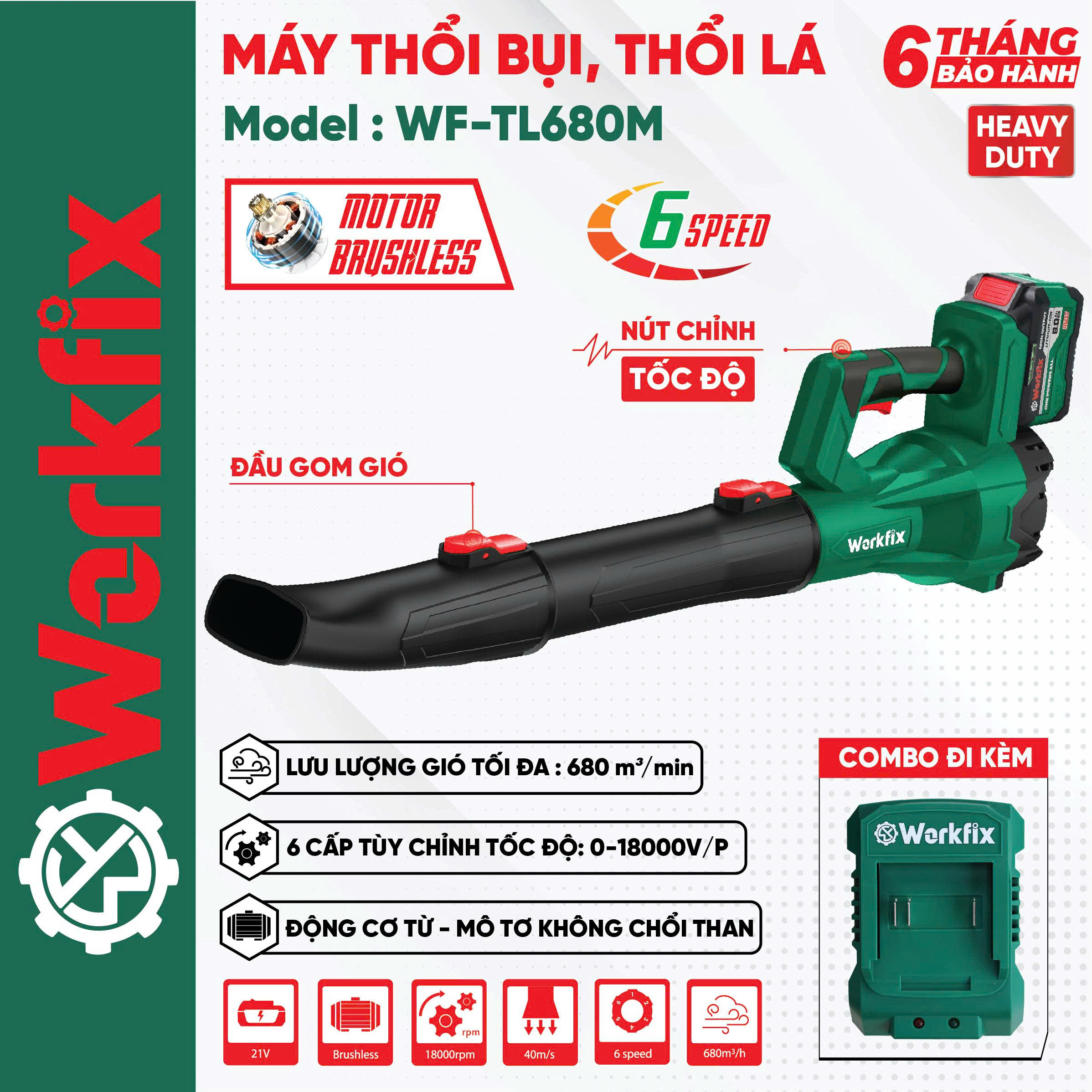 Máy thổi bụi cầm tay workfix sử dụng động cơ 100% lõi đồng cao cấp giúp cho máy có thể hoạt động bền bỉ, tiêu hao ít năng lượng hơn, mang lại hiệu suất làm việc vượt trội