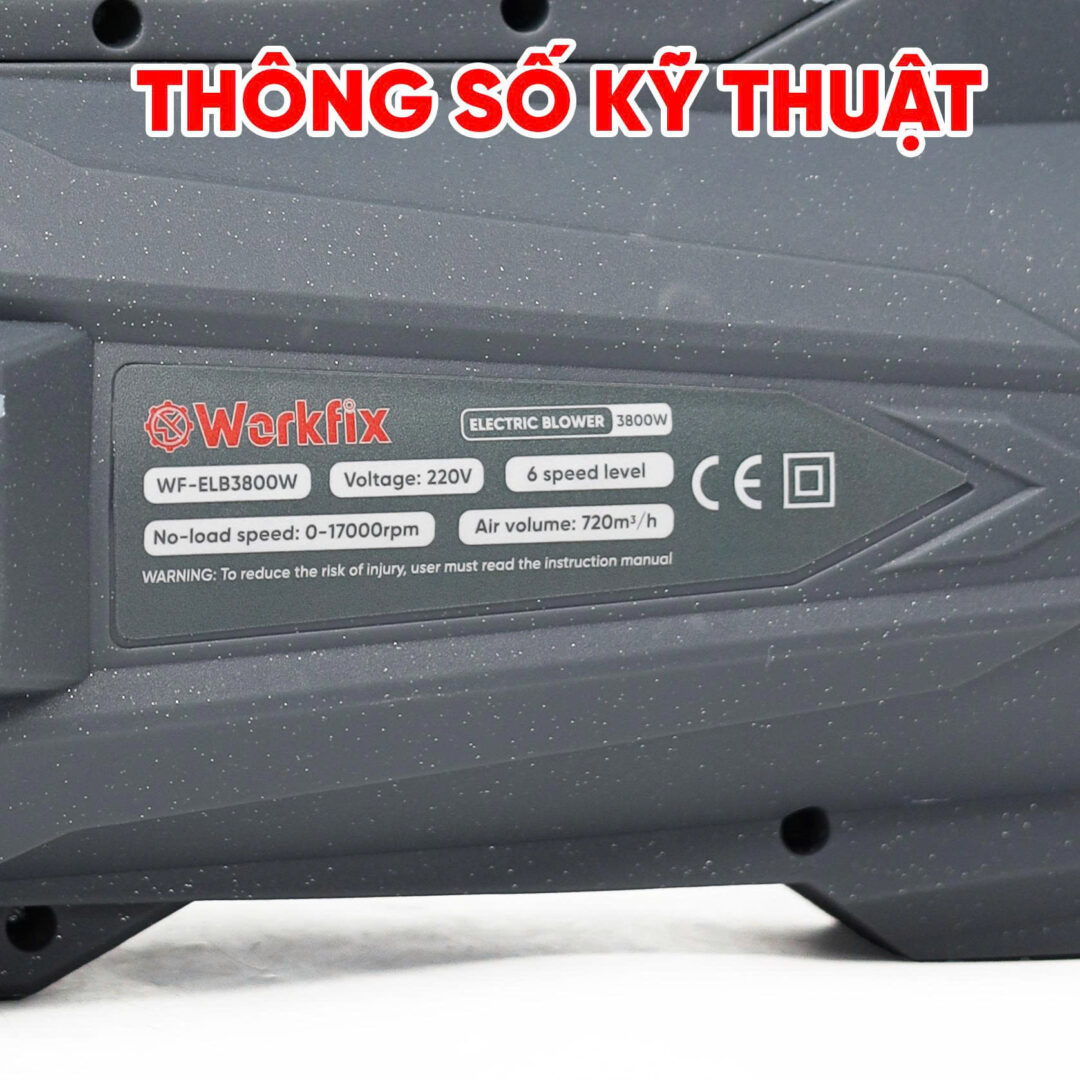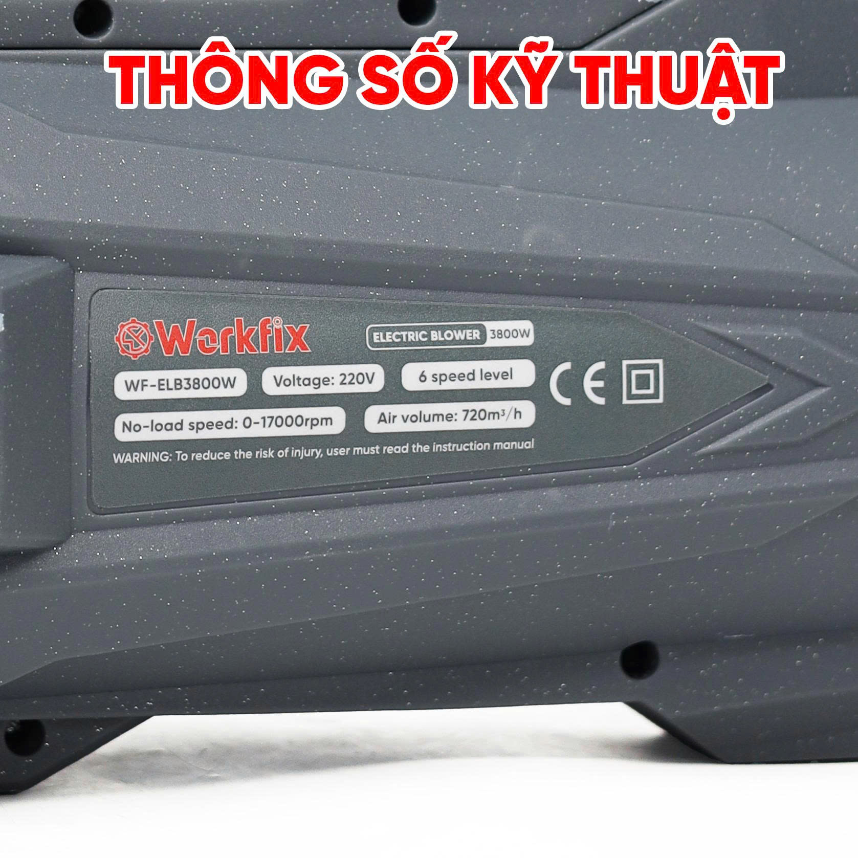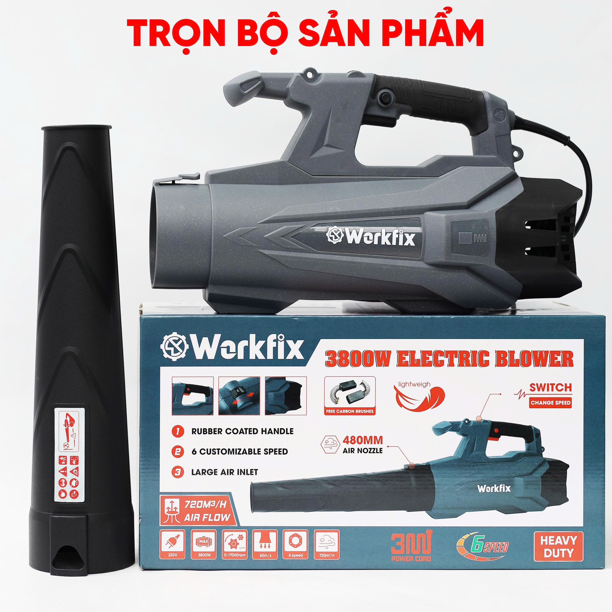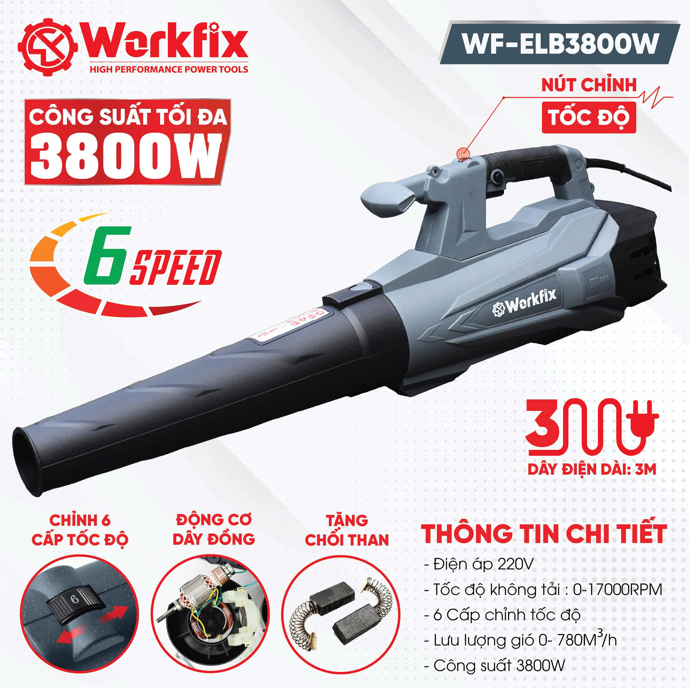 Máy thổi điện WORKFIX WF-ELB3800W – Tặng bộ chổi than cao cấp – Công suất 3800W thổi liên tục
