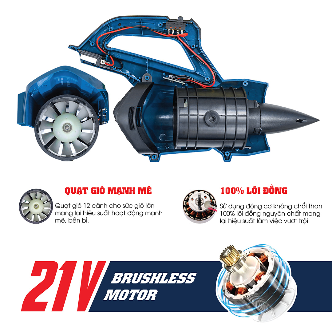 - 100% LÕI ĐỒNG: Sử dụng động cơ không chổi than 100% lõi đồng nguyên chất mang lại hiệu suất làm việc vượt trội