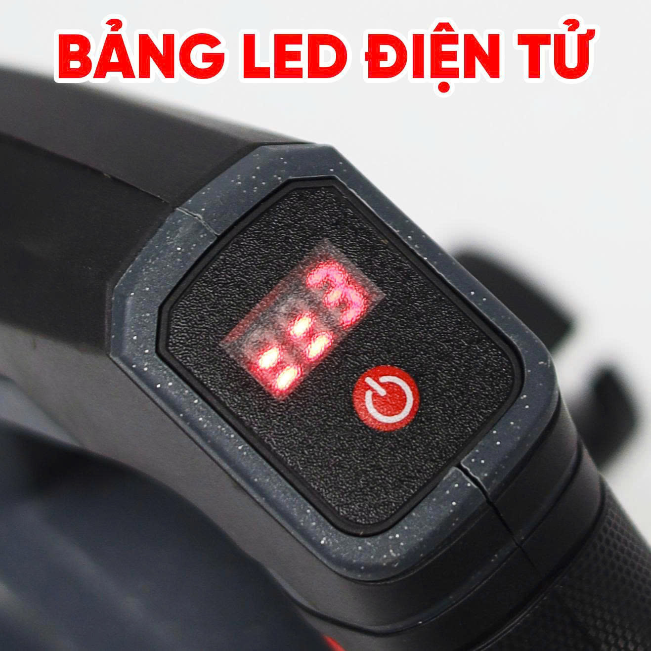 Máy được trang bị bảng đèn LED điện tử giúp theo dõi trực tiếp % pin